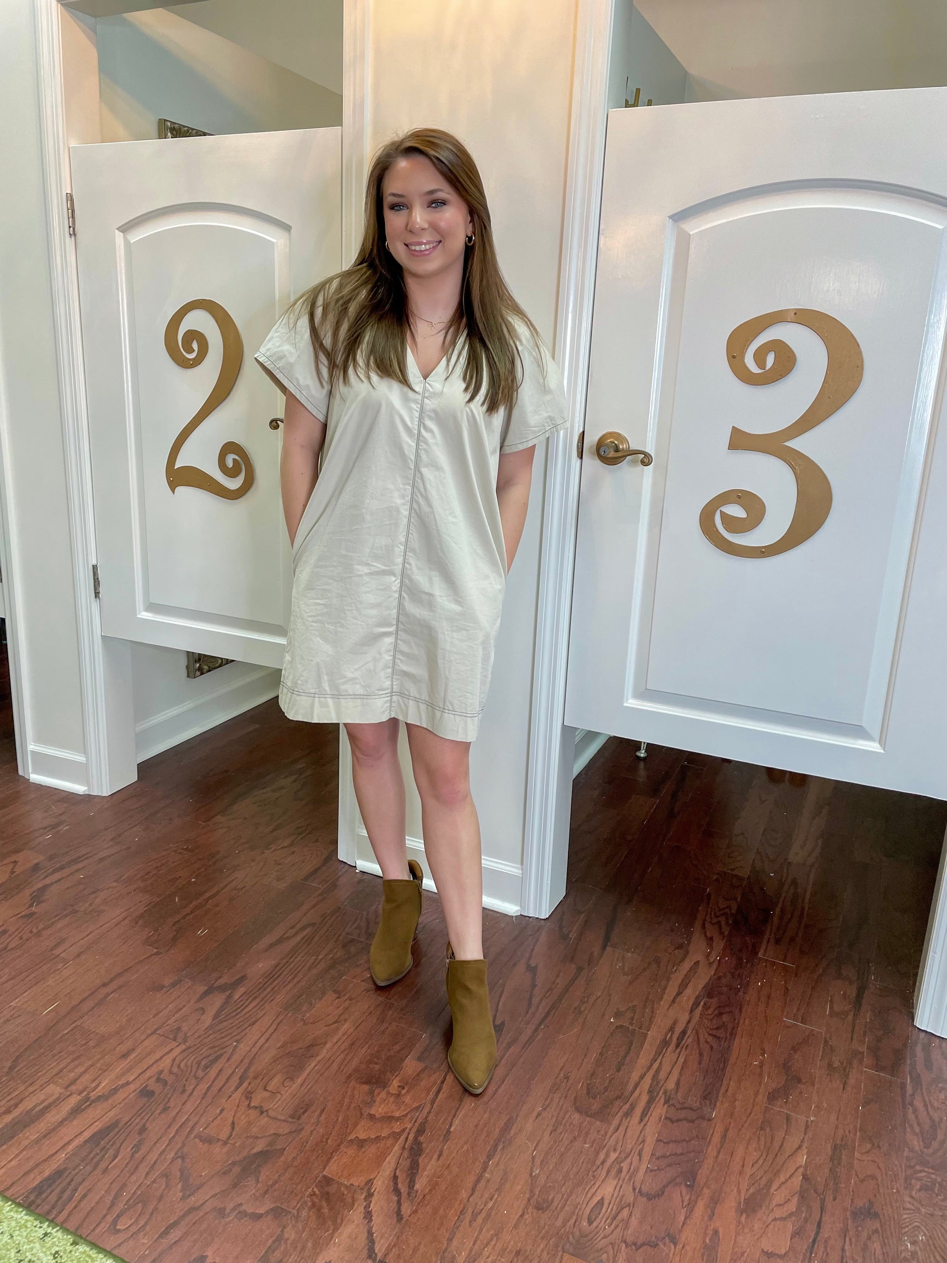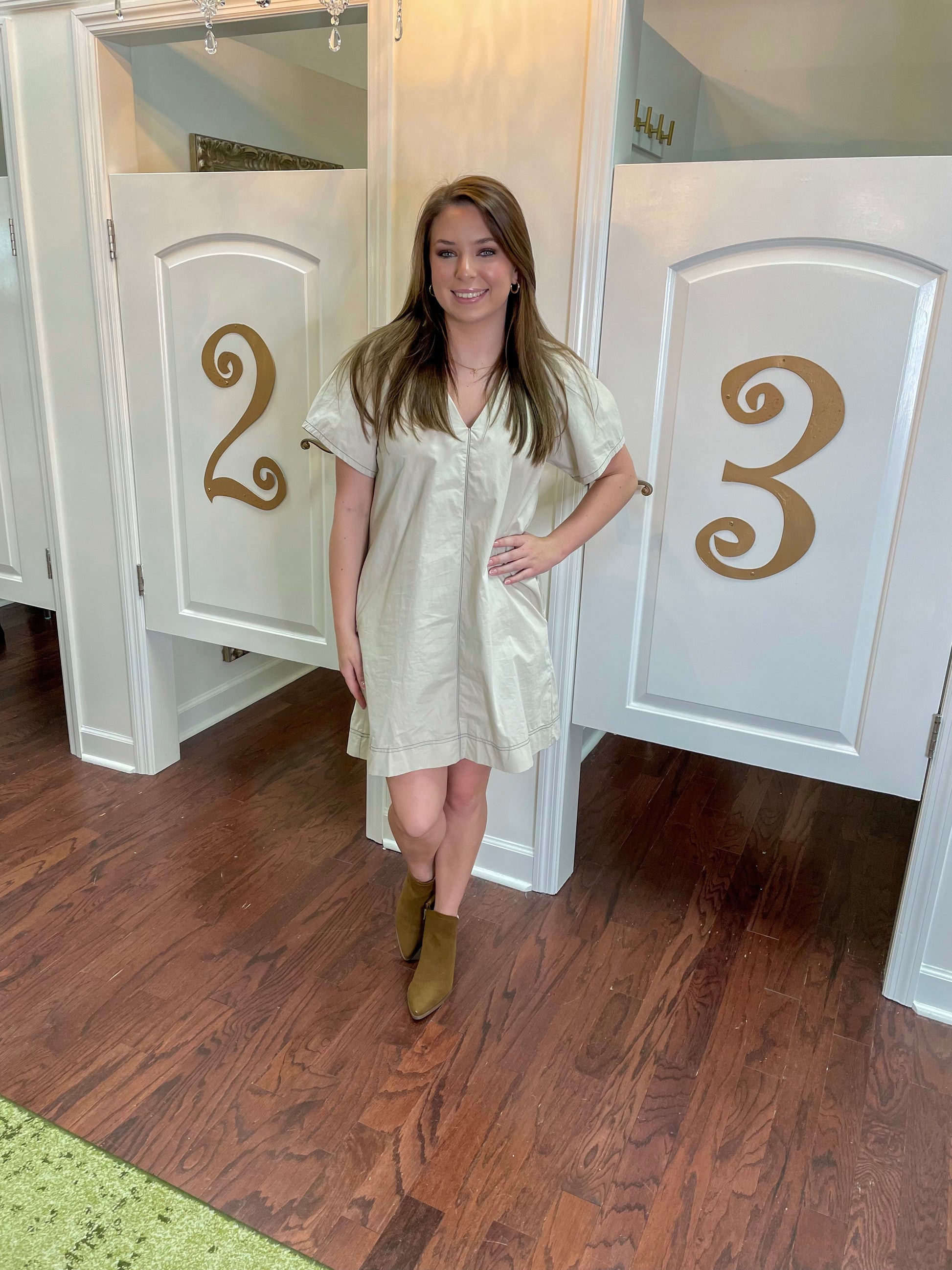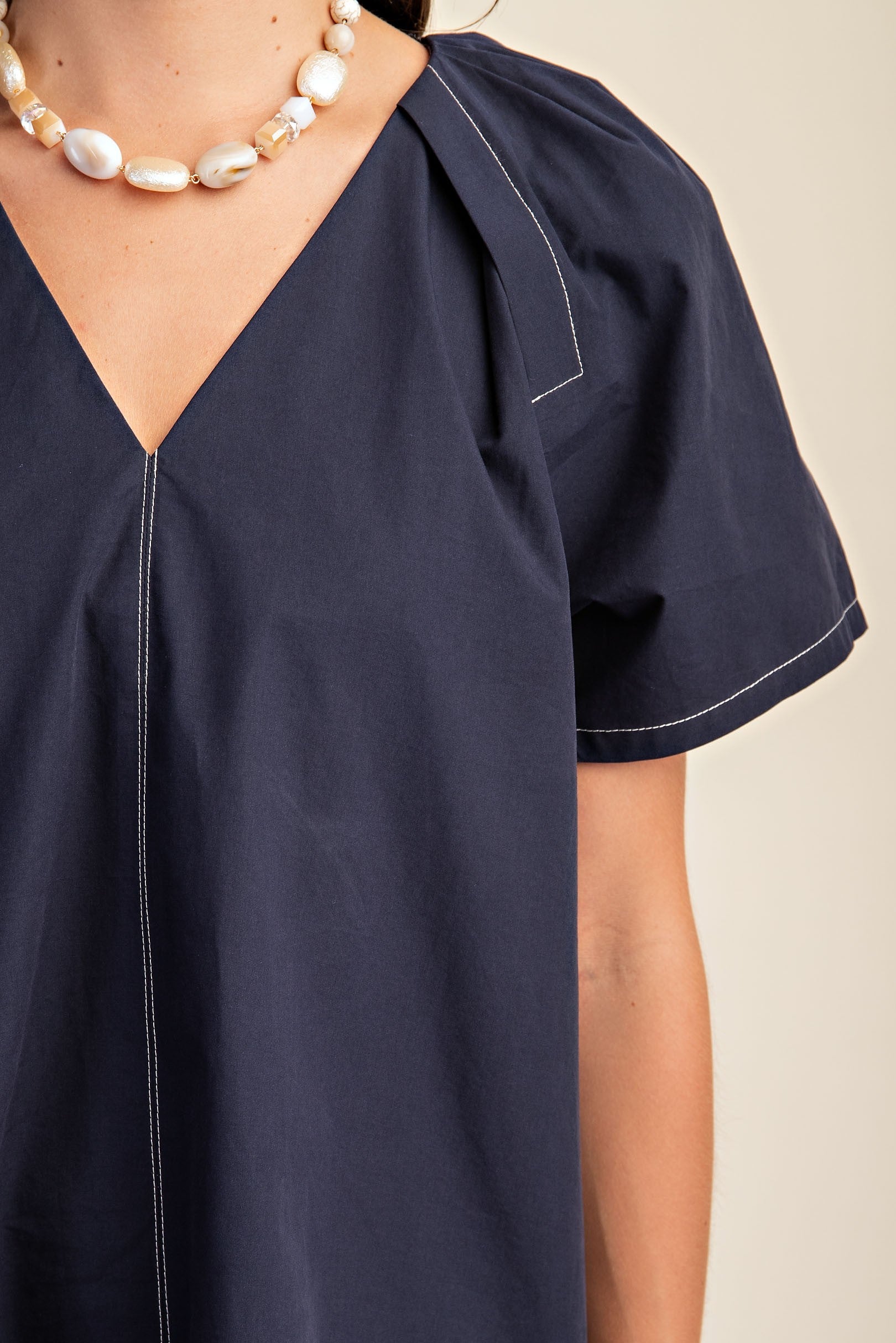 Get ready to stand out in our All That Dress! Made with 100% cotton, this contrast stitch pleated dress features short sleeves and convenient side pockets. Perfect for a day out with friends or a casual work day. (All that and pockets too? Yes, please!)