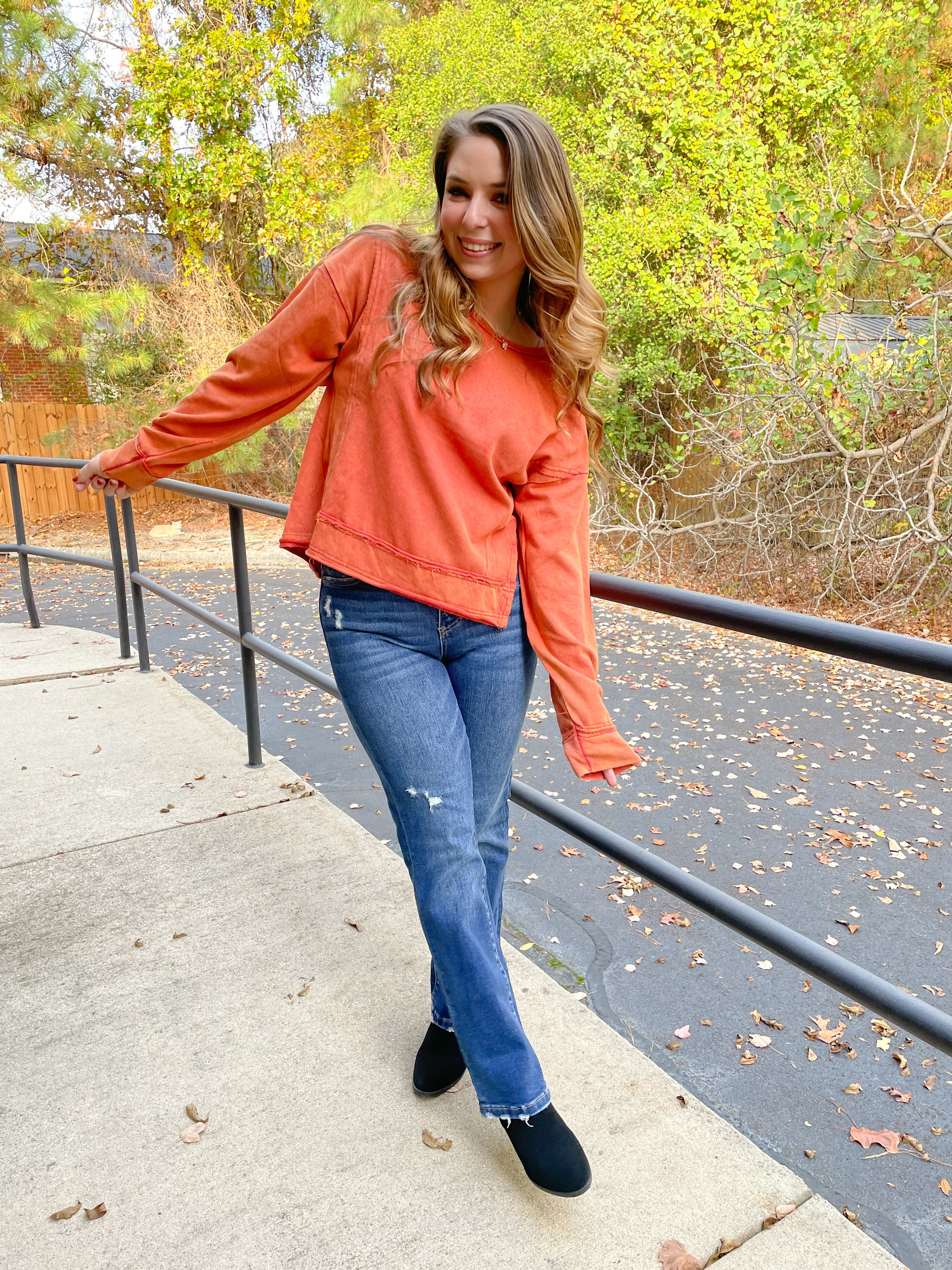 Stay snug and stylish in this Keeping it Cozy Knit Top! The vintage mineral washed fabric will keep you comfy, while the raw edge detail and side slit keep things sassy. With a hi-lo hem, you'll be looking hot no matter where you're going! The perfect mix of cozy and chic!