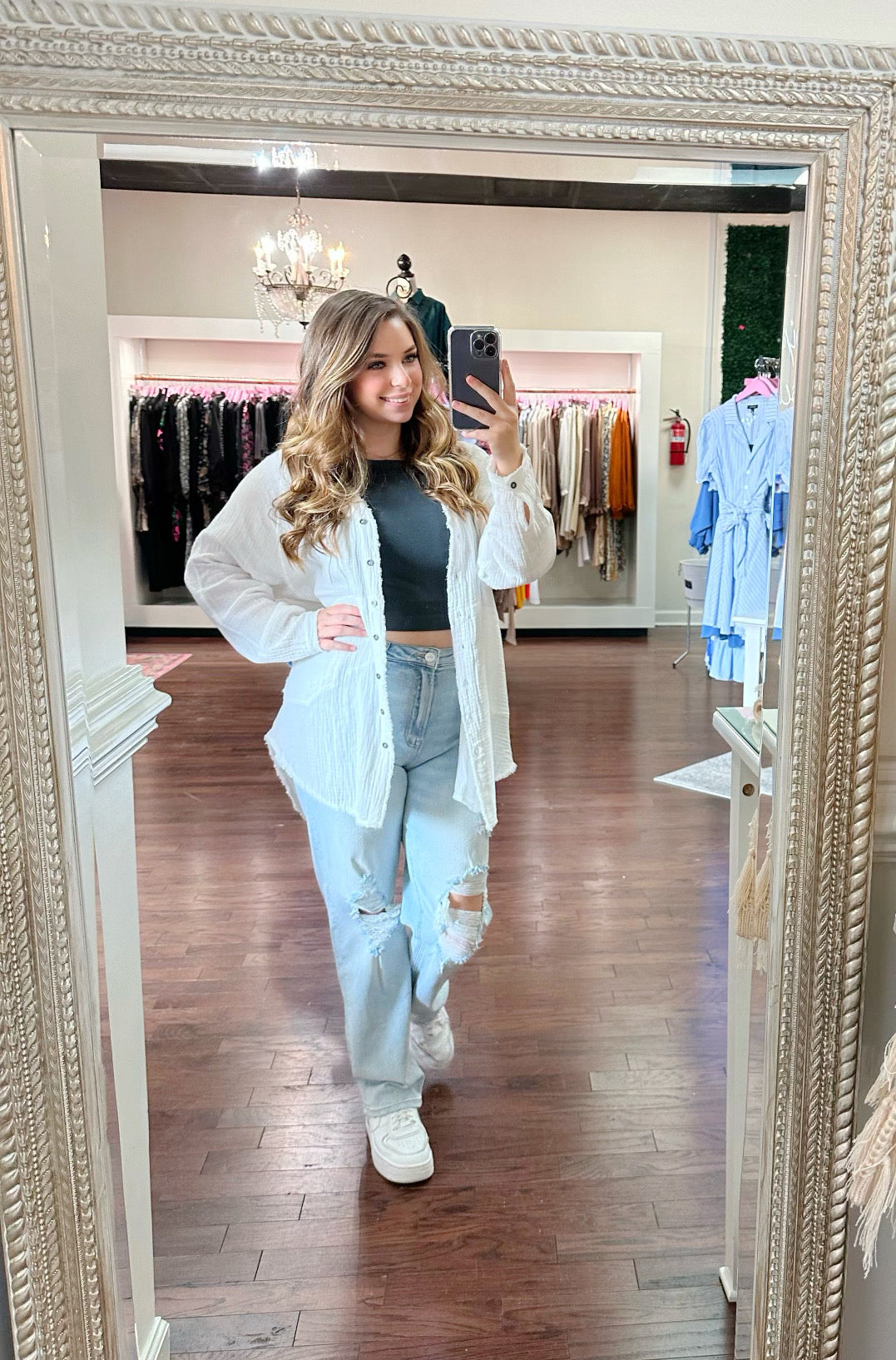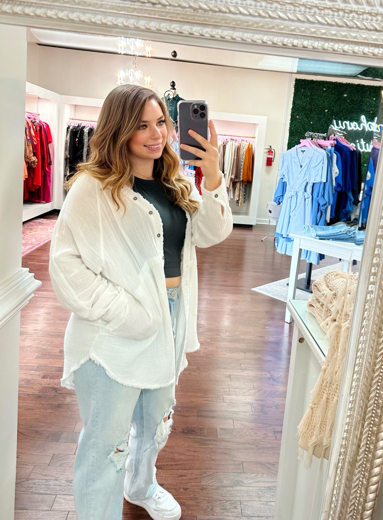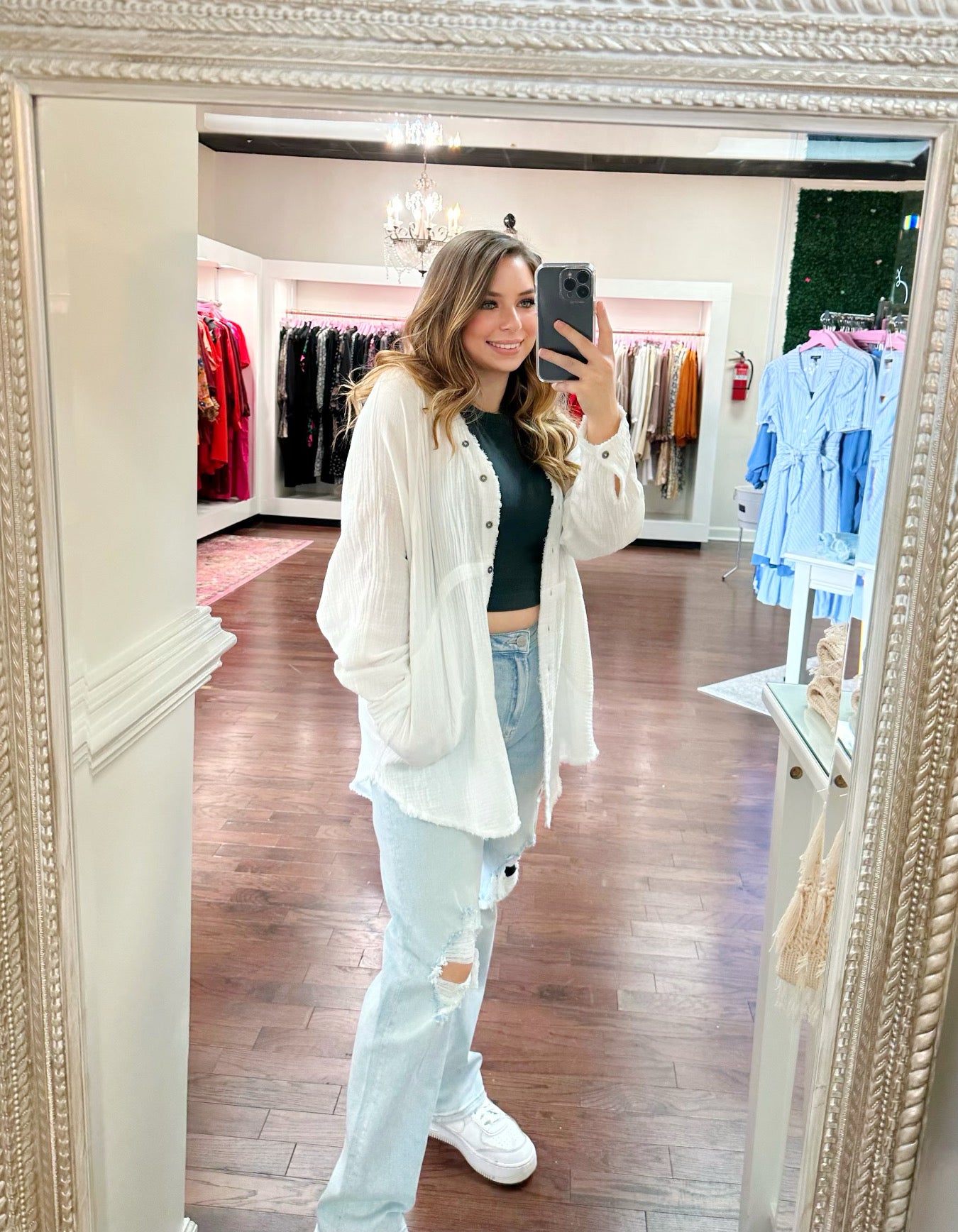 Strut your stuff like an '80s queen in this Lisa Blouse! Crafted from breathable premium soft gauze and featuring a classic vintage wash, you'll be stylin' and profilin' in no time. Perfect for layering, wearing as a top, or using as a cover up - the possibilities are endless!