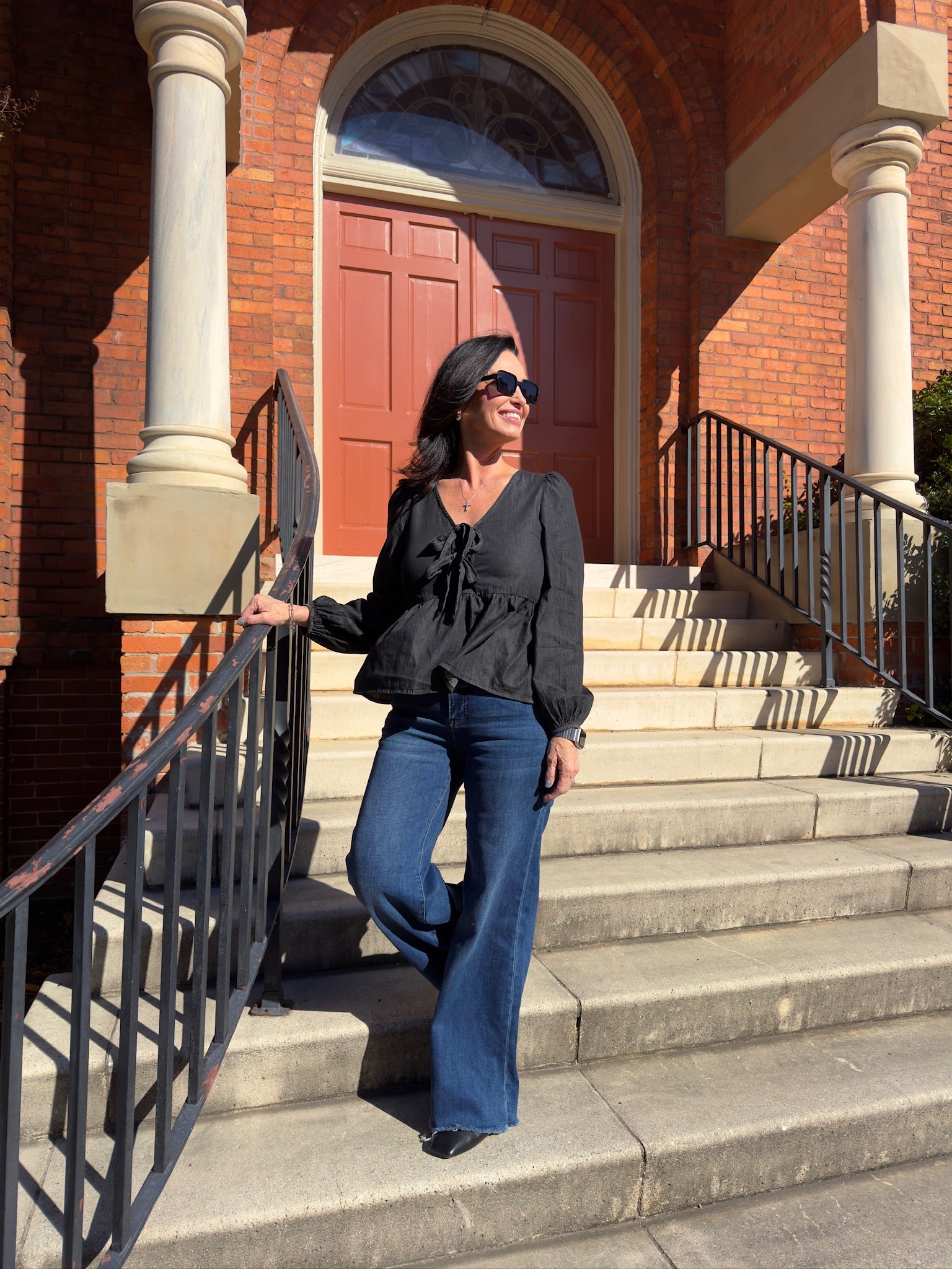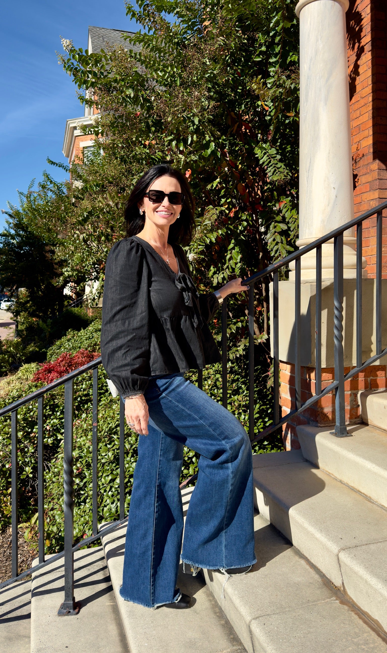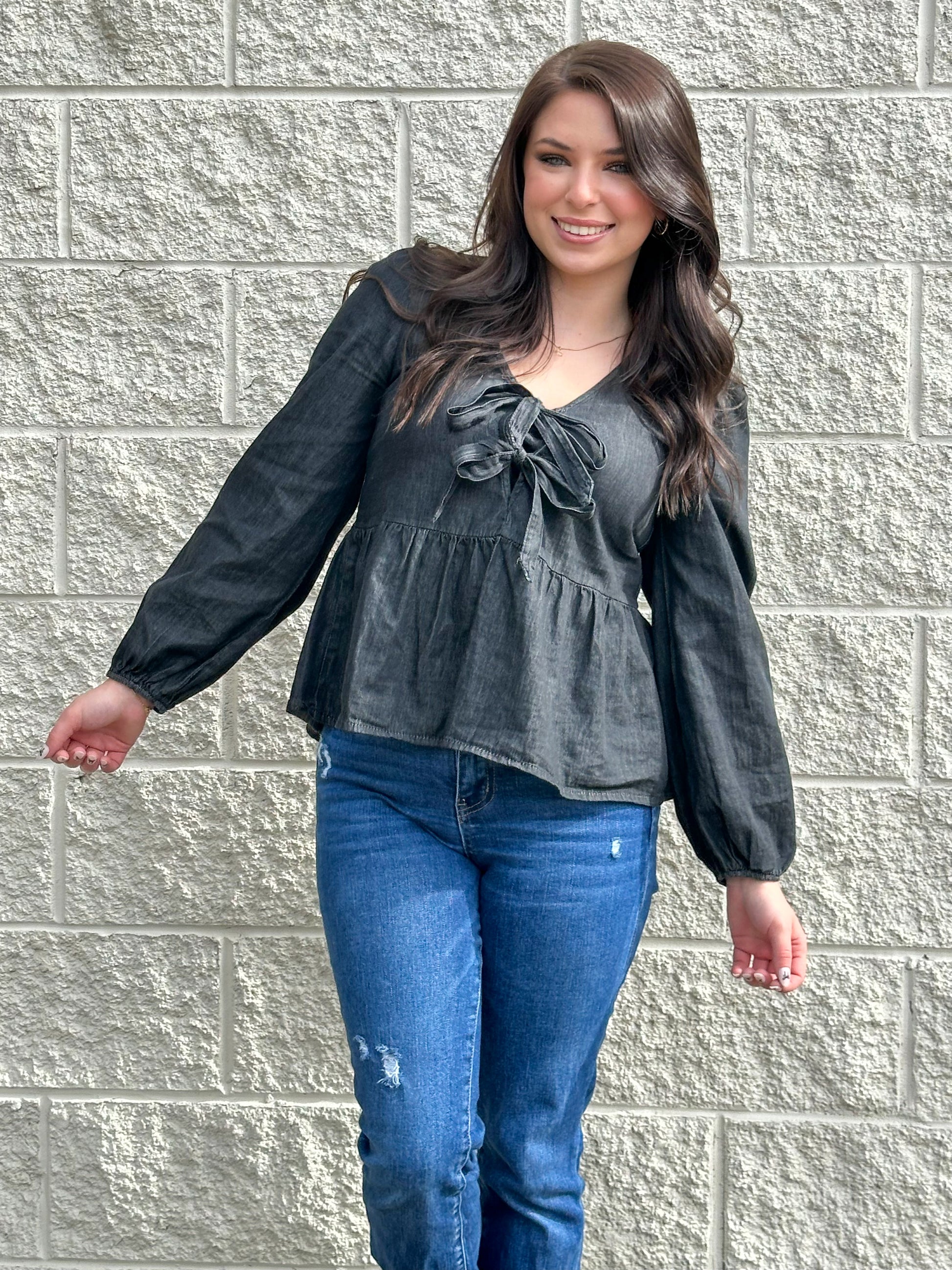 Unleash your playful side with the Alexa Blouse. Made of denim, this relaxed fit top features a front tie detail and peplum design. Perfect for a casual day out, this blouse adds a quirky touch to your wardrobe.