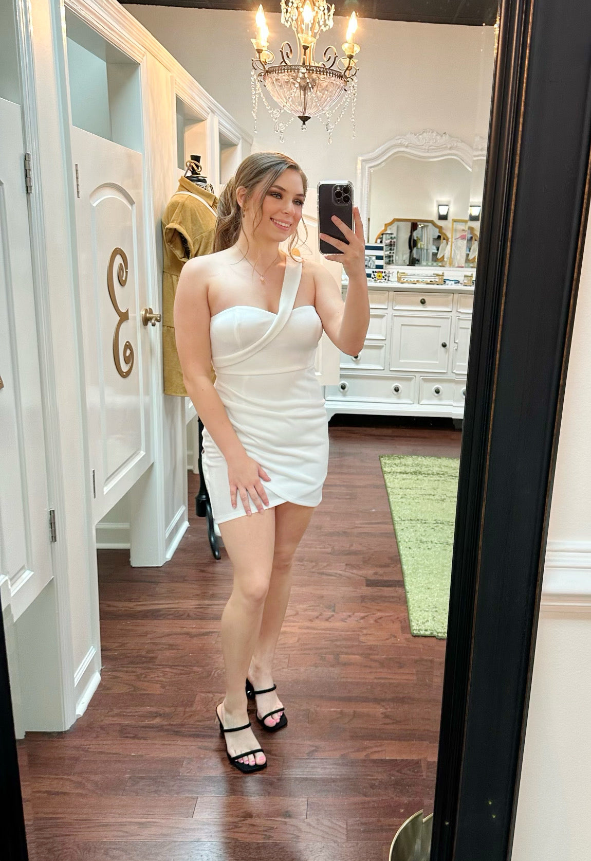 Dazzle in the Angel Dress! This mini bodycon dress flatters any figure with its flattering one-shoulder design! Crafted from a mix of 96% polyester and 4% spandex, it's perfect for homecoming and semi-formal occasions. Show off your angelic style in this stunning white dress!