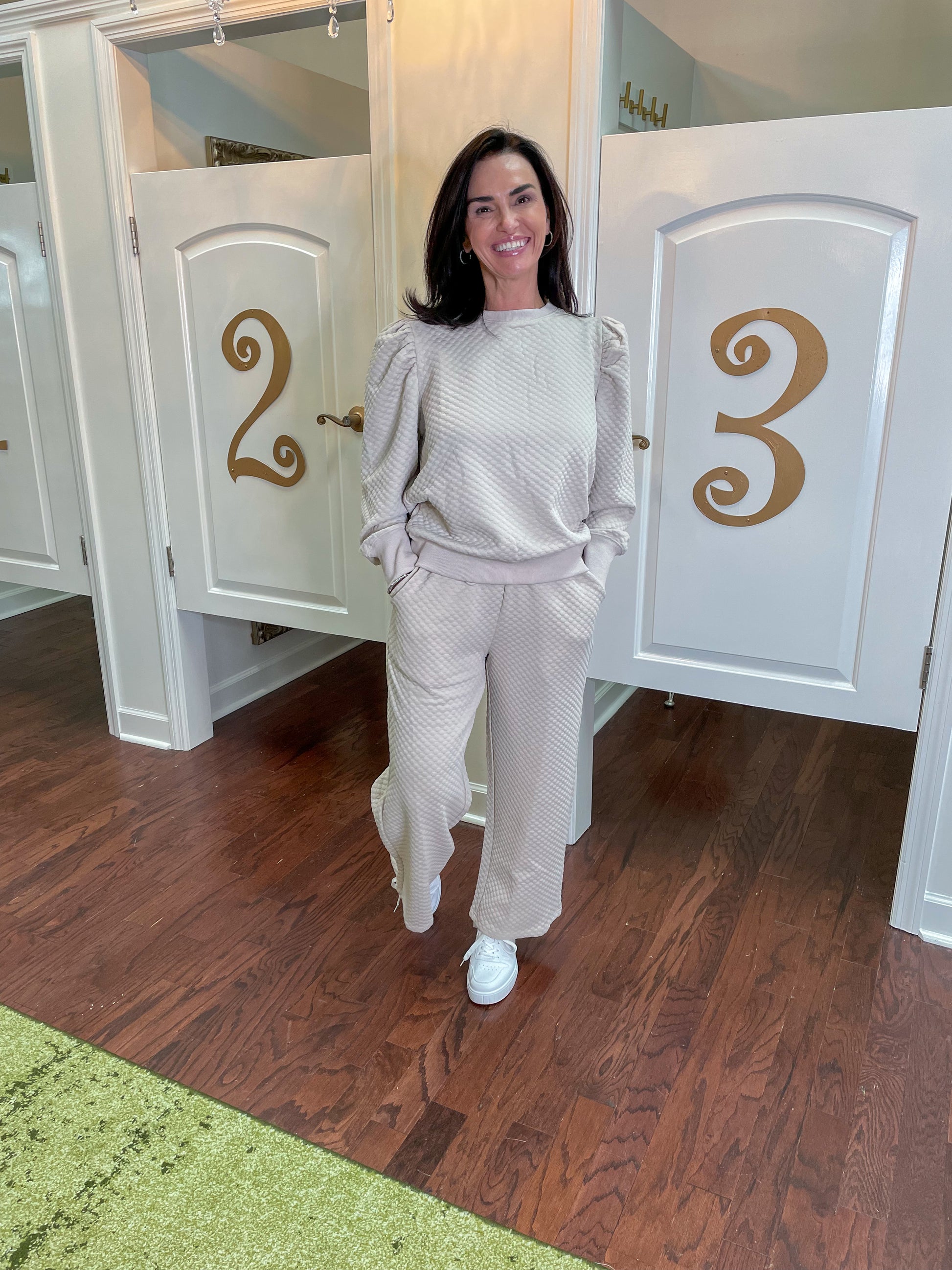 Step into style with the Cara Pants! These chic beige pants feature an embossed texture, drawstring waistline, and side pockets for added convenience. The loose fit offers a lightweight and comfortable feel while the 95% polyester and 5% spandex fabric provides a chic and durable look. Pair with the matching Cara Top for the ultimate matching set. Get ready to turn heads with Cara Pants!