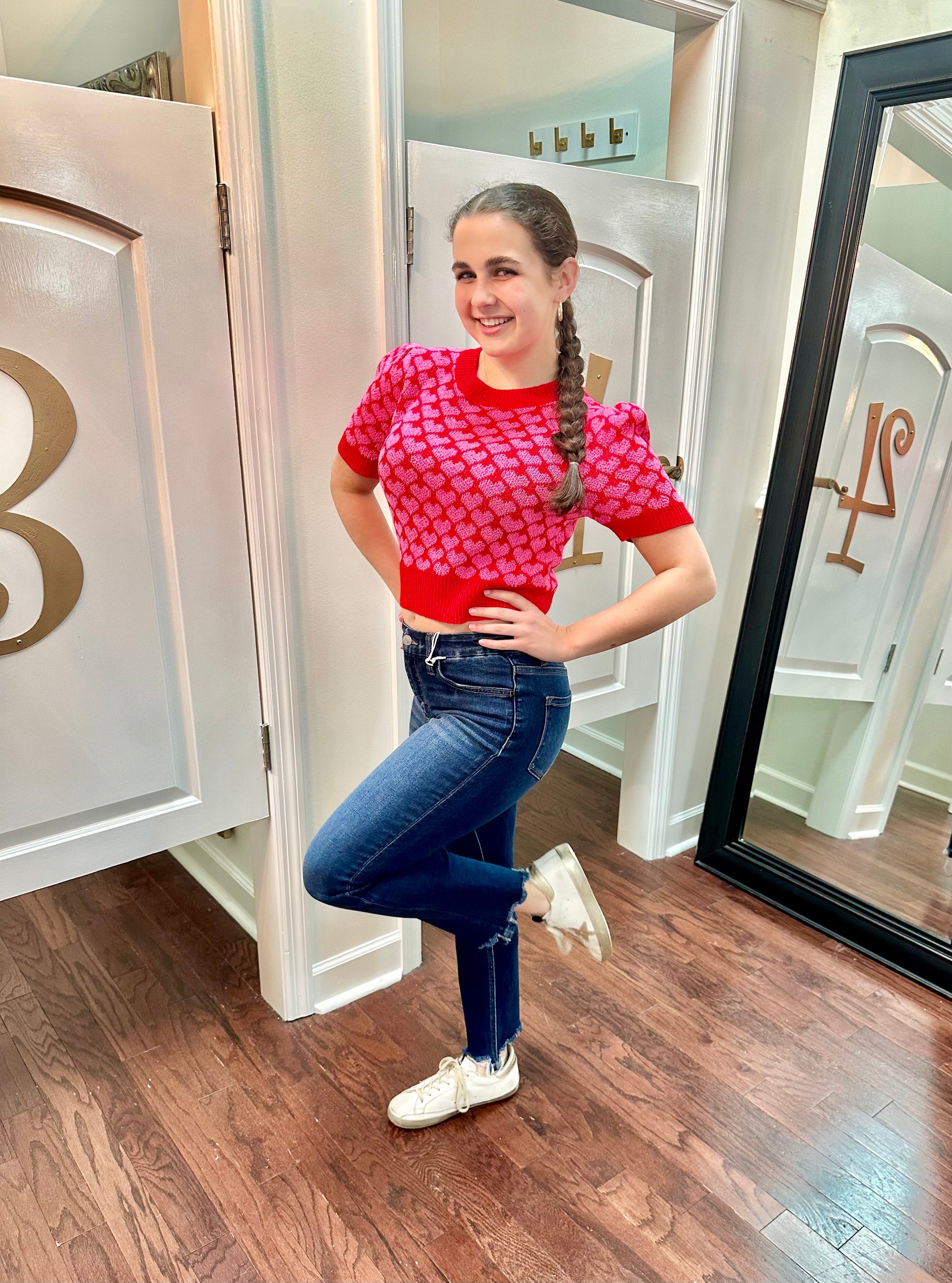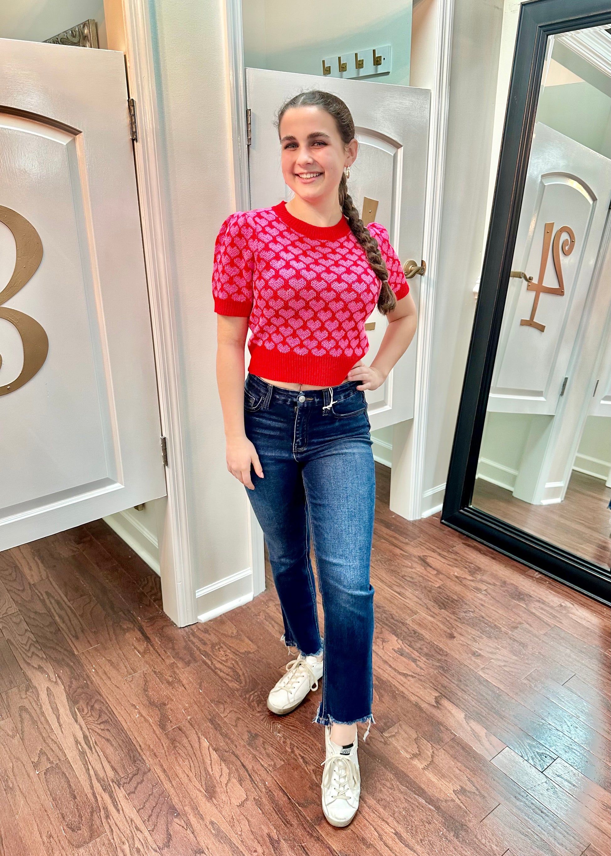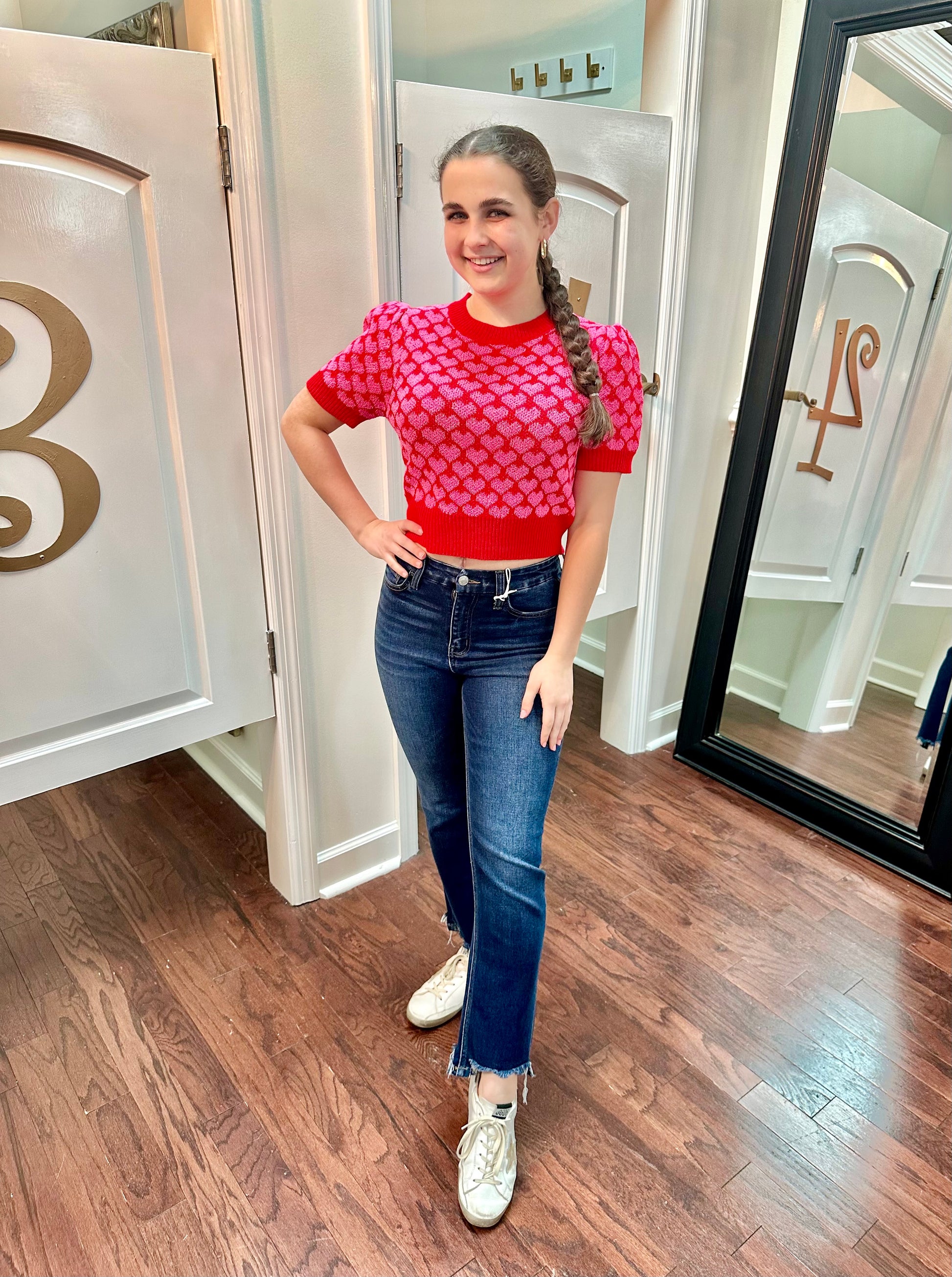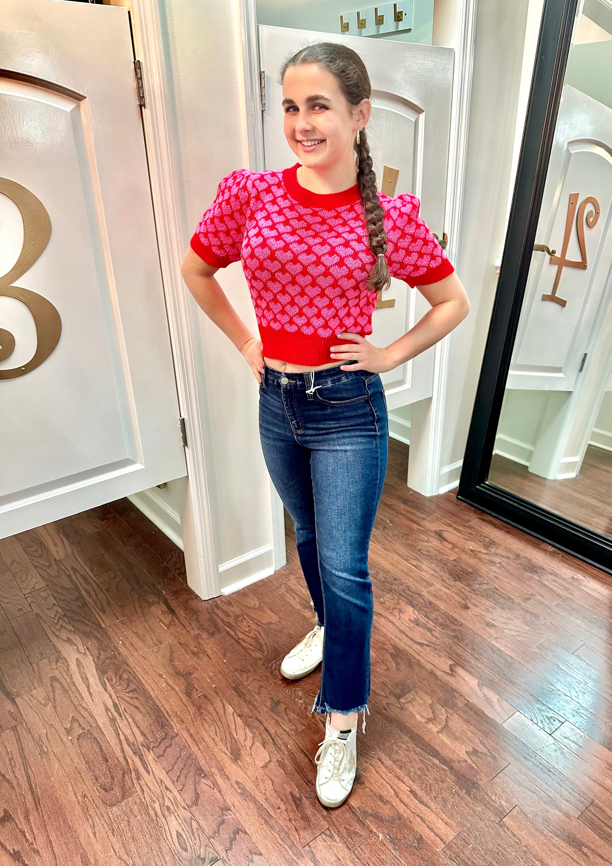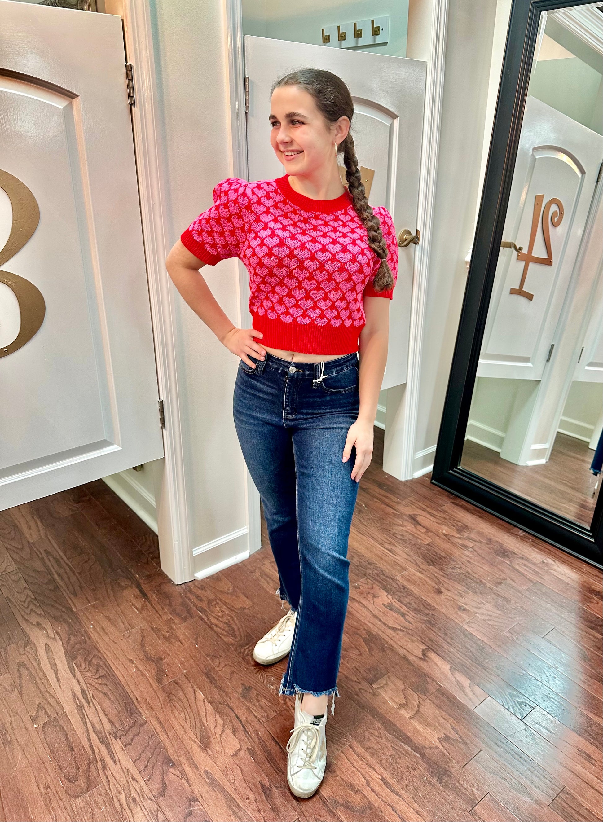 Get ready to steal some hearts in our Cupid Cropped Sweater! With its playful heart detail and trendy puff shoulders, you'll be the love of everyone's life. Perfect for a fun, quirky look that doesn't take anything too seriously. (But seriously, who wouldn't fall for this sweater?)