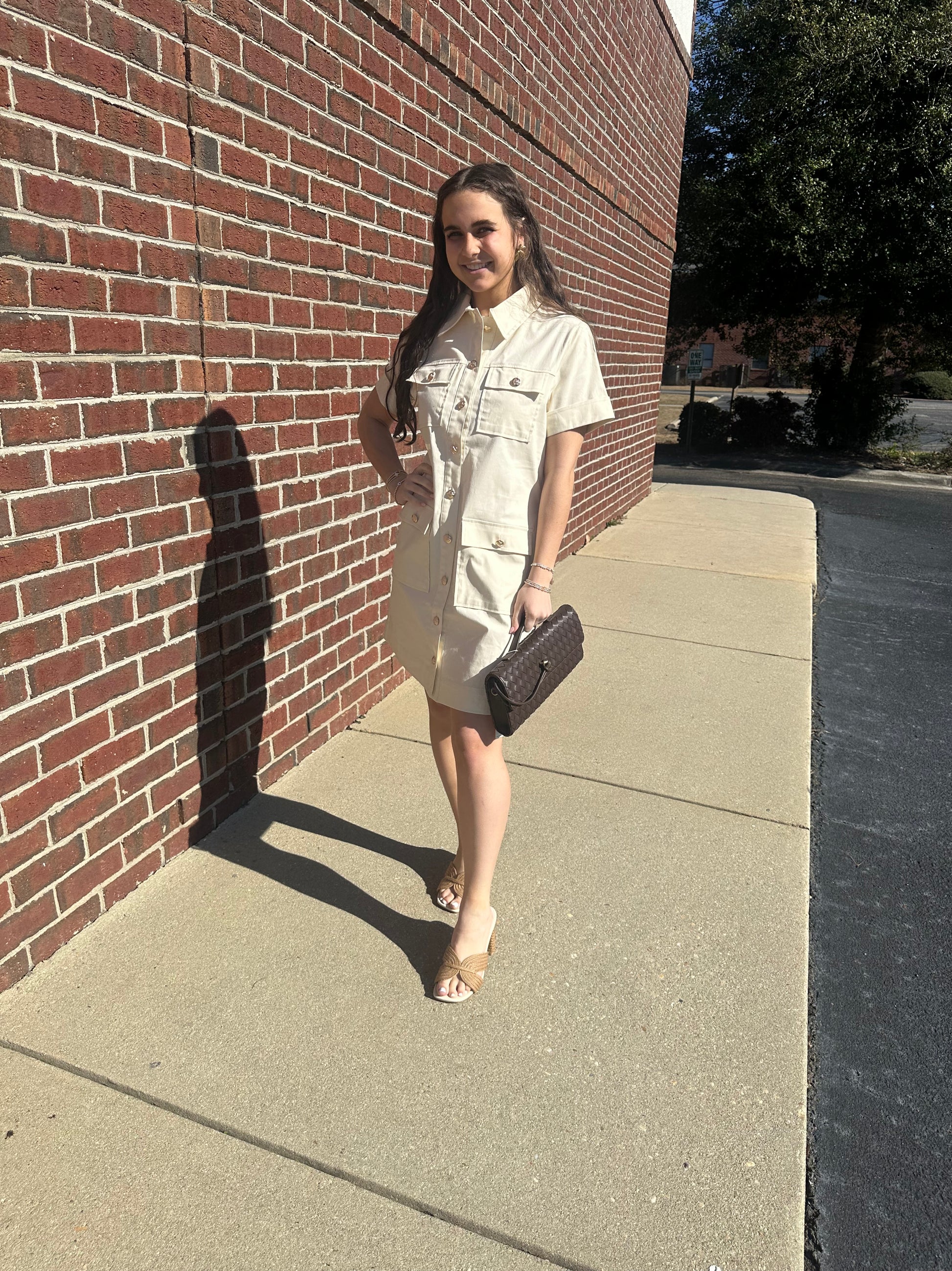 Set sail in style with our Dita Dress! Made from a nautical stretch chino fabric, this button-front shirt dress is sure to make a splash. With 97% cotton and 3% spandex, it combines comfort and style for a perfect fit. Pack your bags and get ready for a stylish adventure!