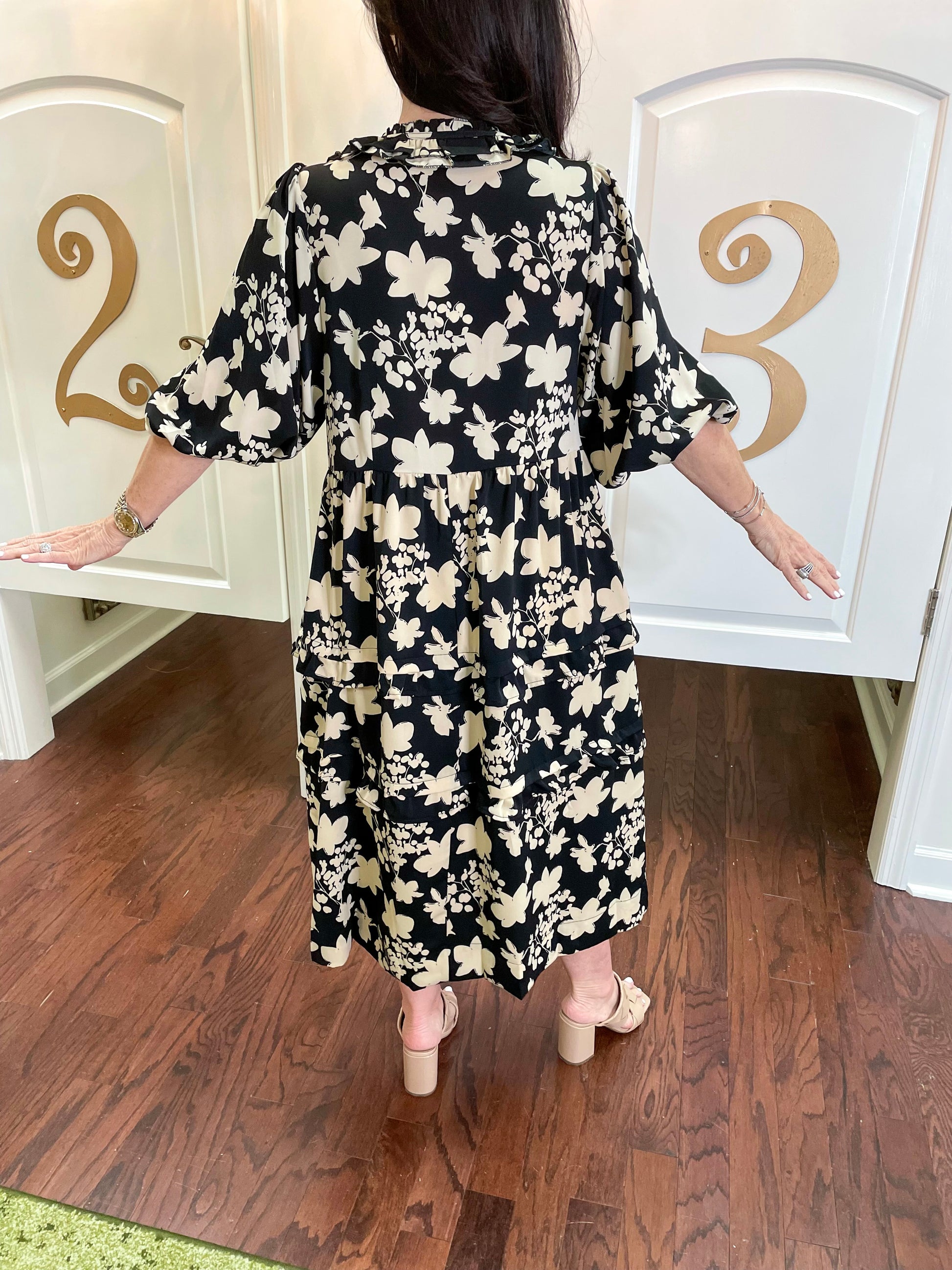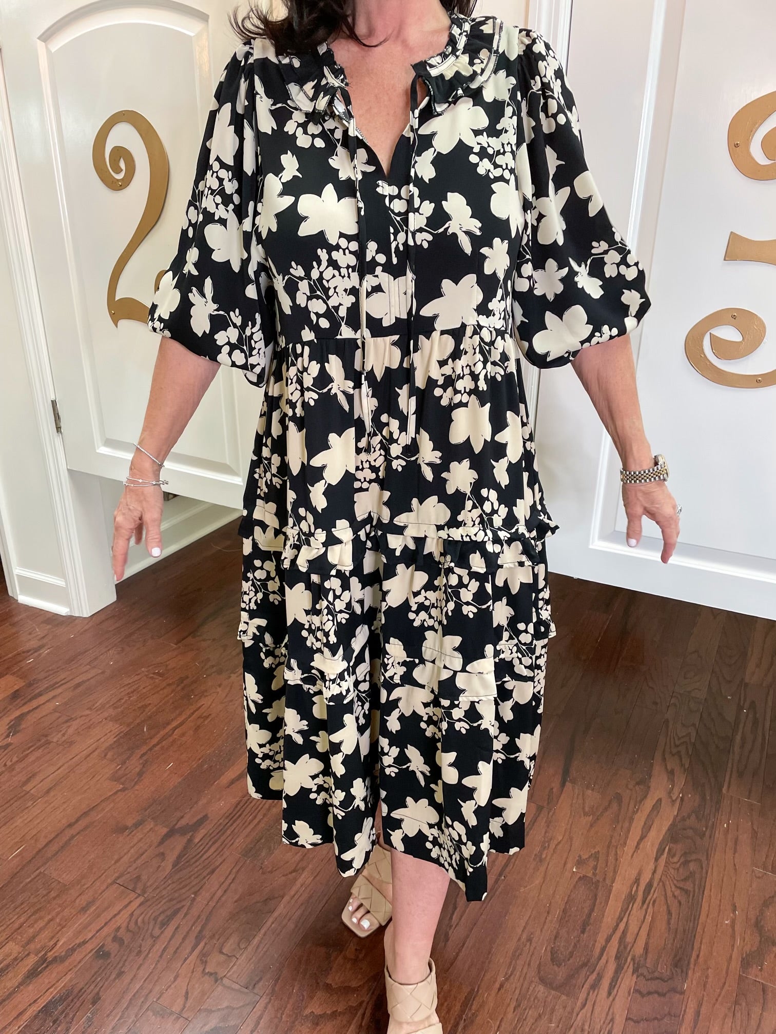 Get ready to make a statement in the Emilia Dress! This playful midi dress features a unique two-tone floral print and eye-catching balloon sleeves with ruffle detailing. Made with 100% polyester, it's comfortable and stylish. Perfect for any occasion!