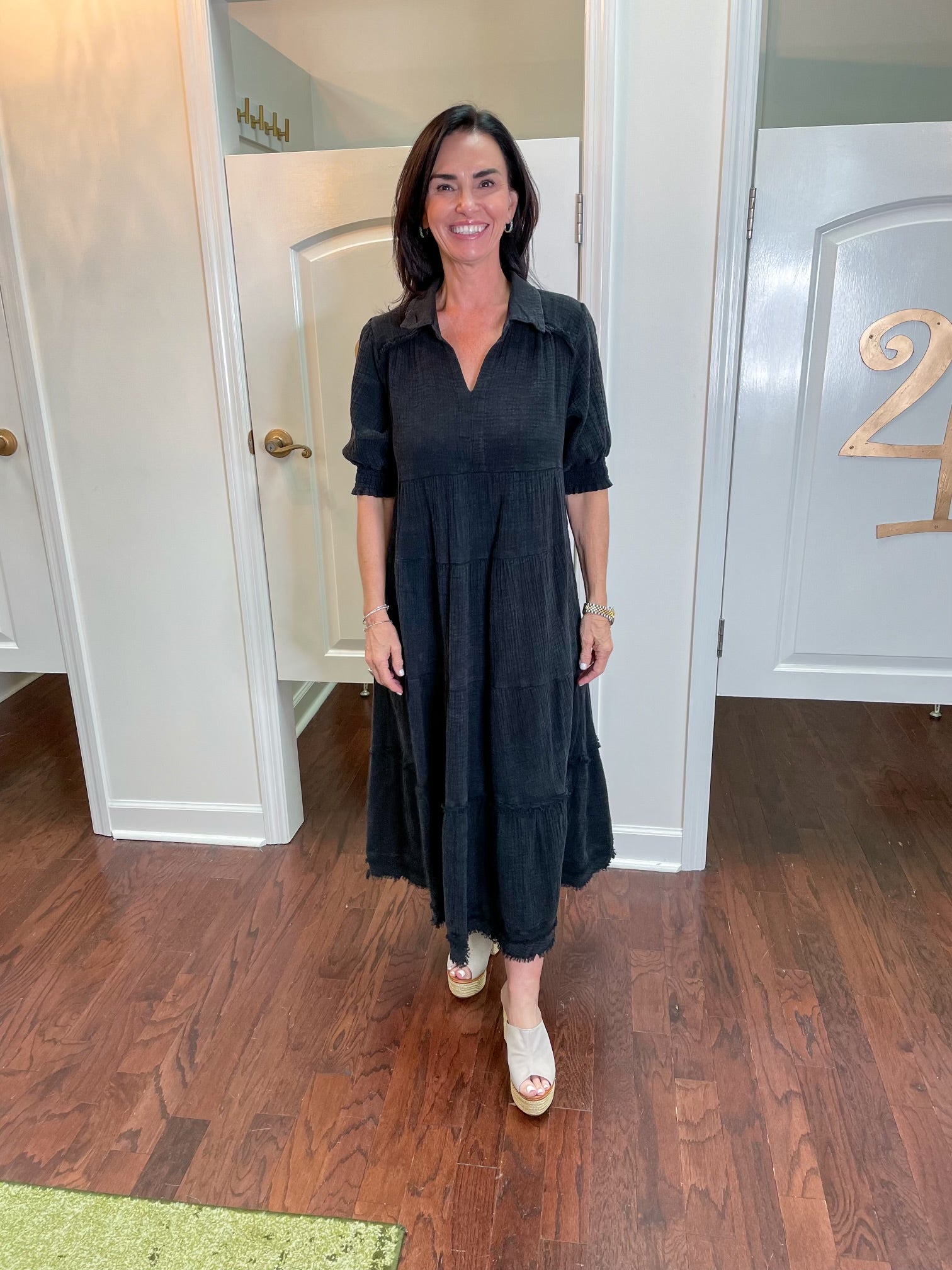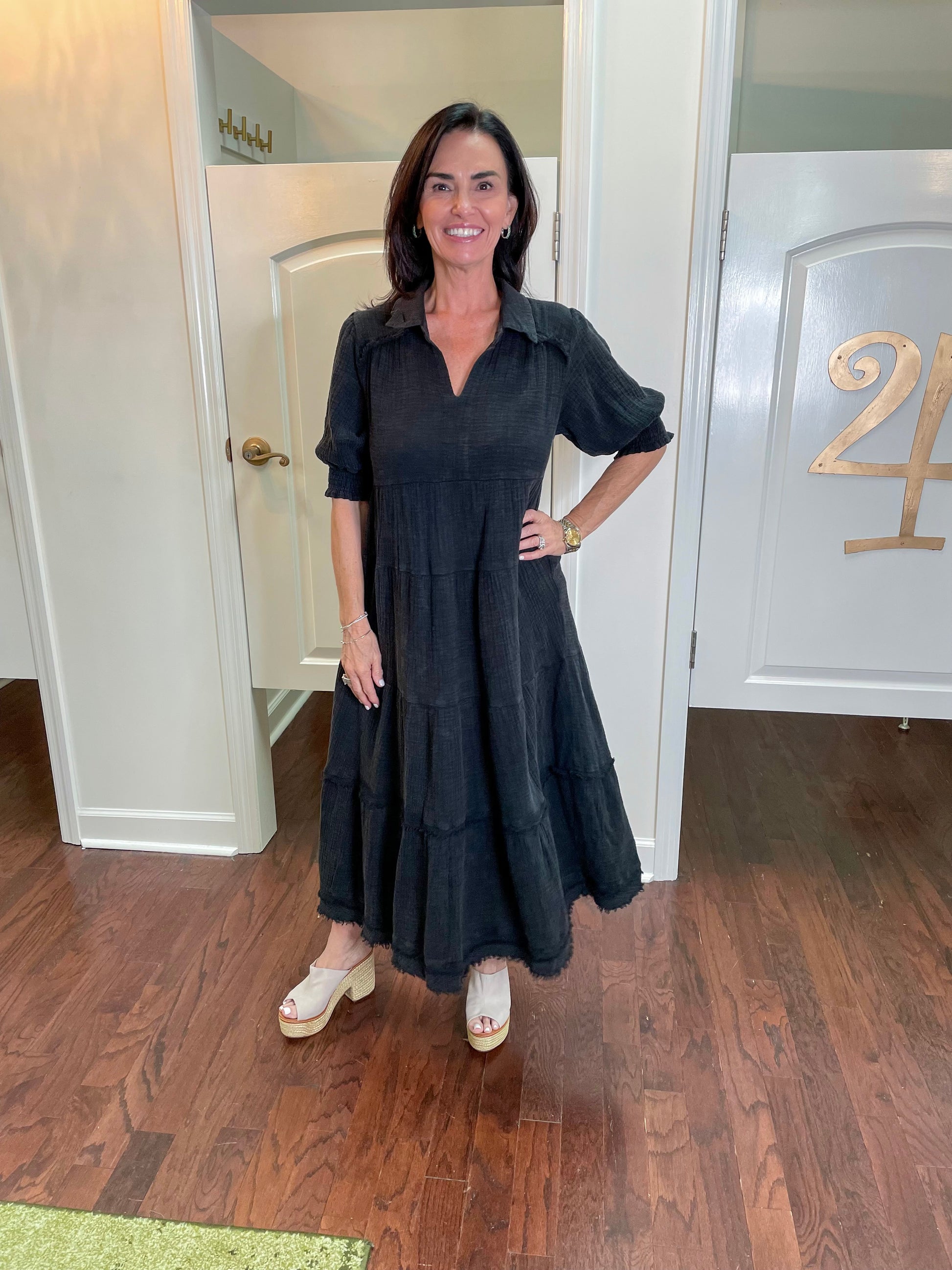 Relive the past in our Good Ol' Days Dress! Made of mineral wash cotton gauze, this split neck midi dress features smocked puff sleeves and a frayed hem. The stunning ash color adds a touch of nostalgia to any day. 100% cotton for ultimate comfort.