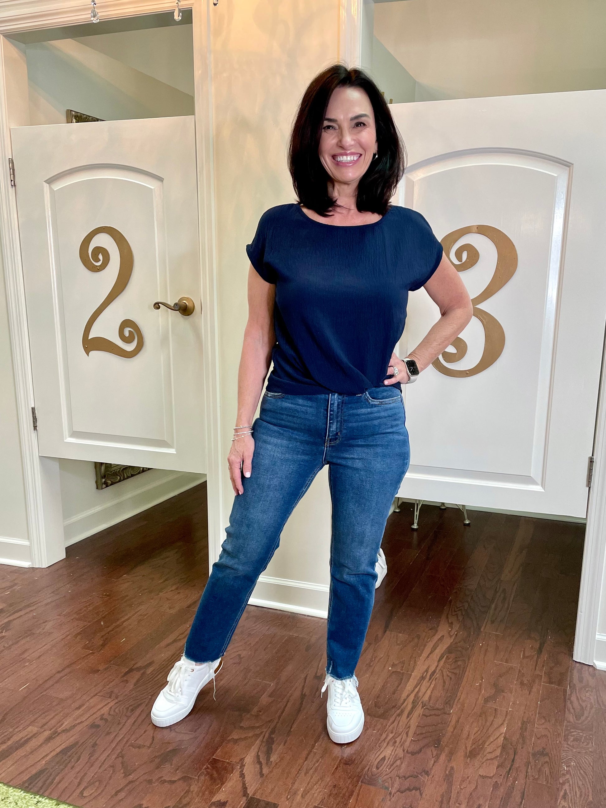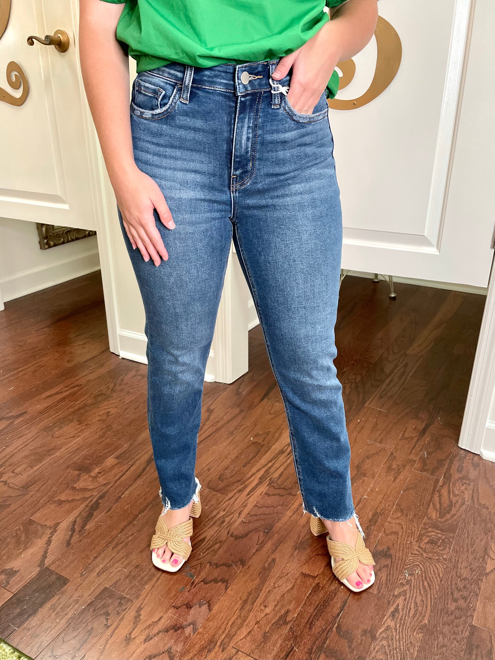 Put a playful spin on everyday denim with the Flying Monkey Razor-Sharp Jeans. These high rise, slim straight jeans offer comfort stretch denim, a raw hem, and cropped length for a stylish yet relaxed fit. Made of a blend of 65% cotton, 30% polyester, 3% rayon, and 2% spandex, these jeans are sure to become your new go-to for effortless style.