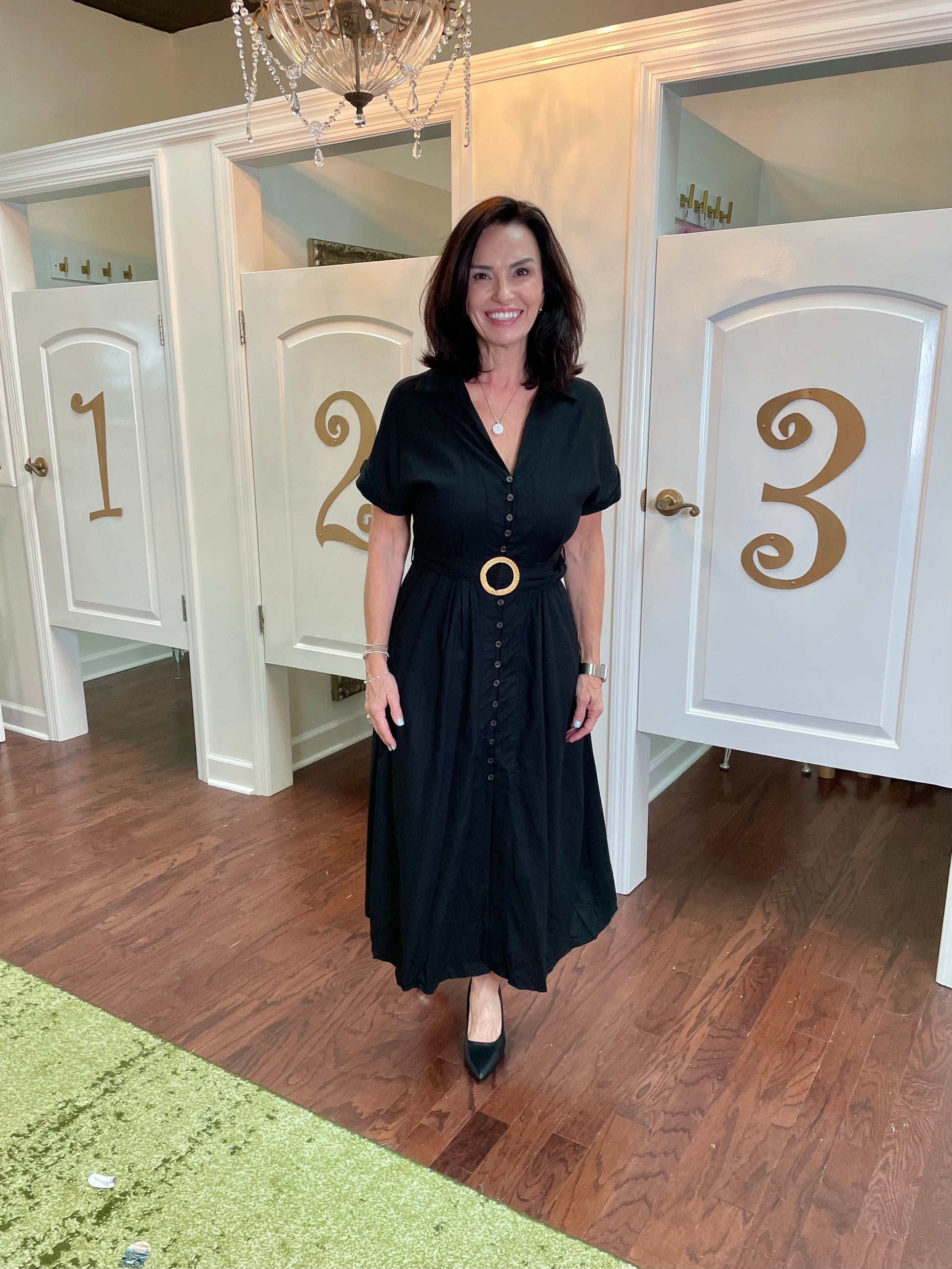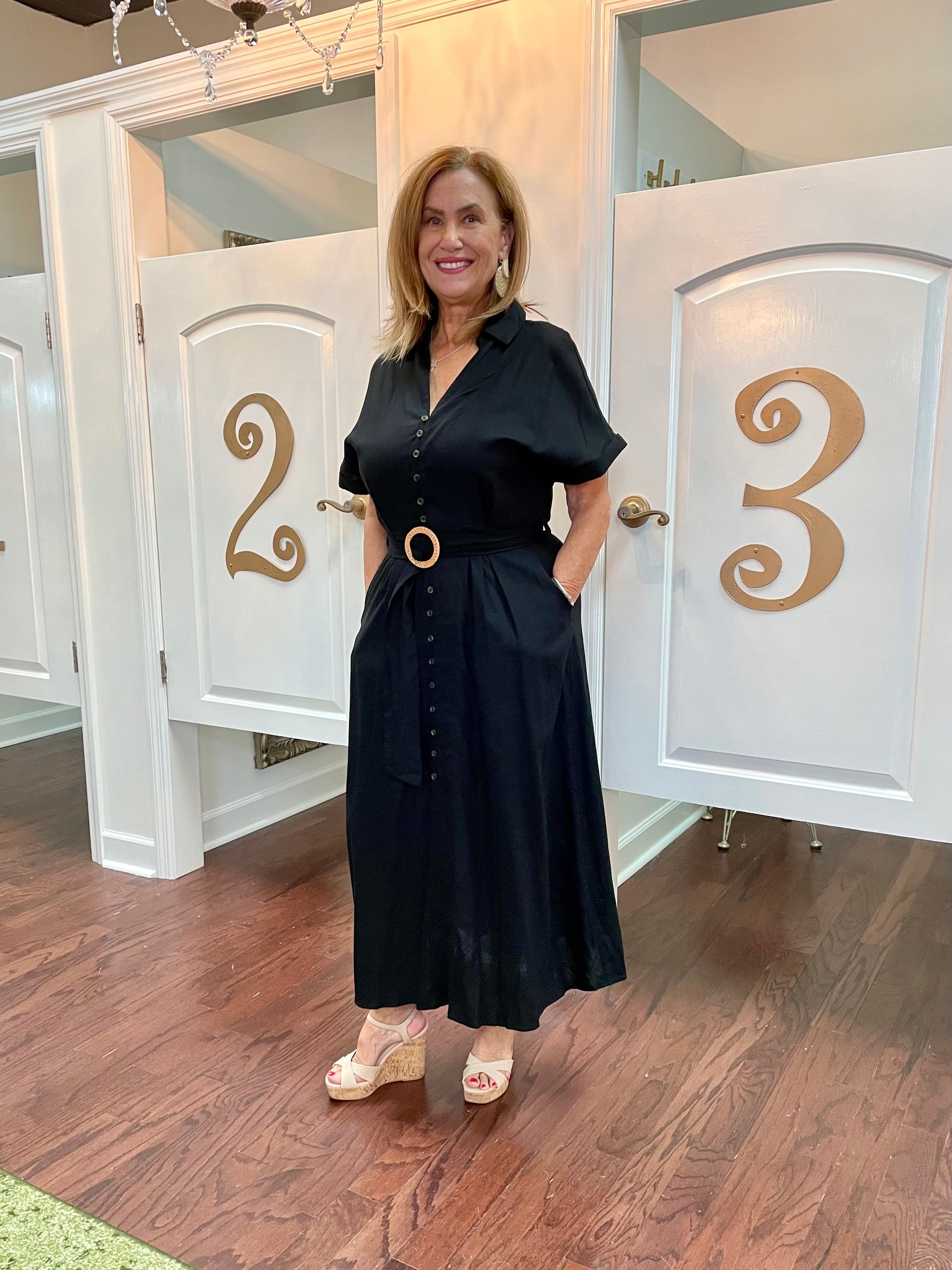 The Heaven Sent Dress boasts a unique wicker rattan buckle, adding a touch of boho to the sash belt. With a v neck, front button closure, side pockets, and rolled up short sleeves, this 70% cotton and 30% linen dress also features a chic front slit. Perfect for adding a fun twist to your wardrobe!