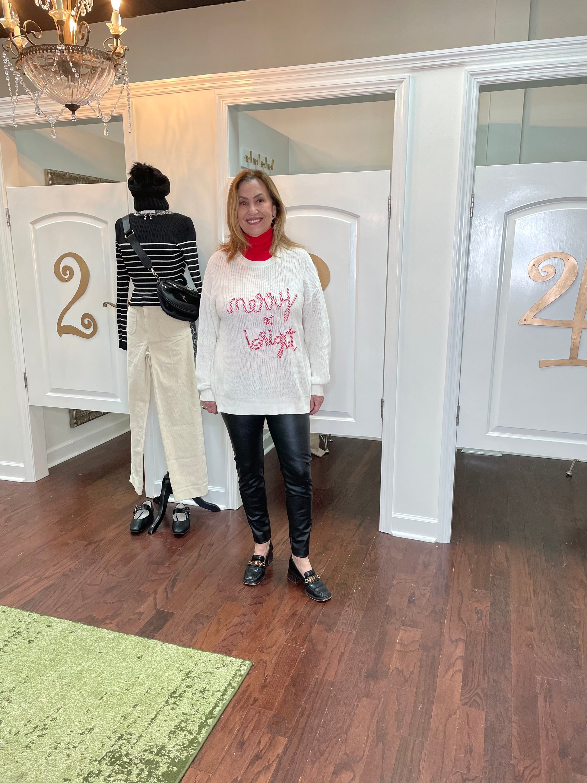 Wrap yourself in festive cheer with our Holly Sweater! This knitted sweater offers both warmth and durability, making it perfect for chilly winter days. The playful candy cane design and cheerful "Merry Bright" lettering add a fun touch to any holiday outfit!