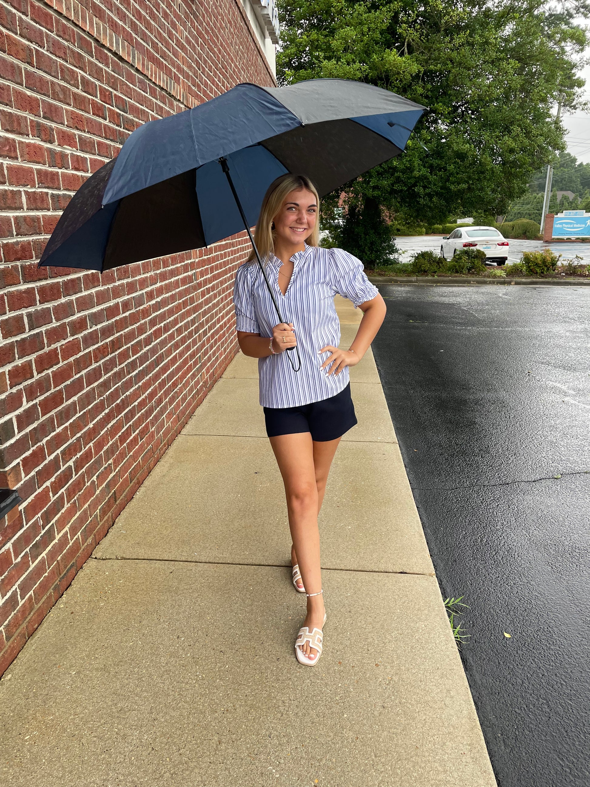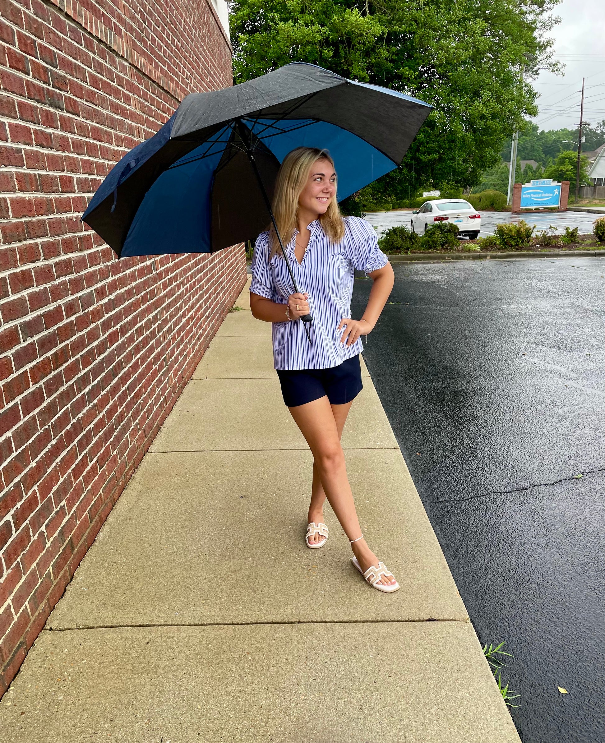 Elevate your everyday style with the Jen Blouse, a delightful cotton top that's sure to turn heads! This playful piece features a charming ruffle split neckline and adorable puff sleeves that add just the right amount of flair. The lightweight, breathable fabric keeps you cool while the smocked details create a flattering silhouette. In a versatile blue and white stripe pattern, this blouse pairs perfectly with high-waisted bottoms for an effortlessly chic look that'll have everyone asking, "Where did you get that top?"