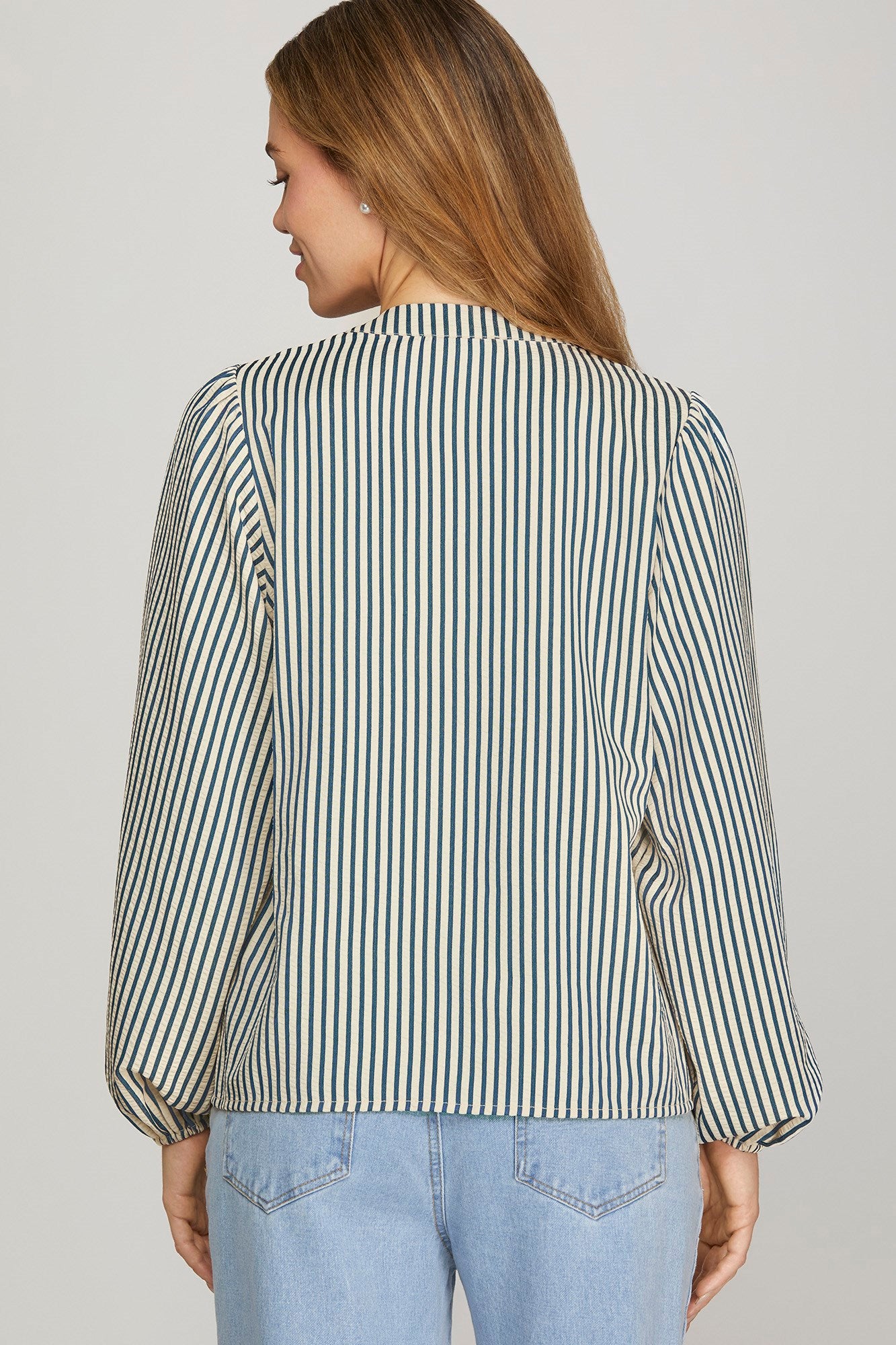 The Joanna Top brings playful charm to your wardrobe with its long sleeves and pintuck detailing. Featuring a trendy front tie and classic stripes, this woven top adds a fun twist to any outfit. Made from 100% polyester, it offers a smooth, comfortable fit perfect for day-to-night wear. It’s a stylish pick for effortless, laid-back looks.