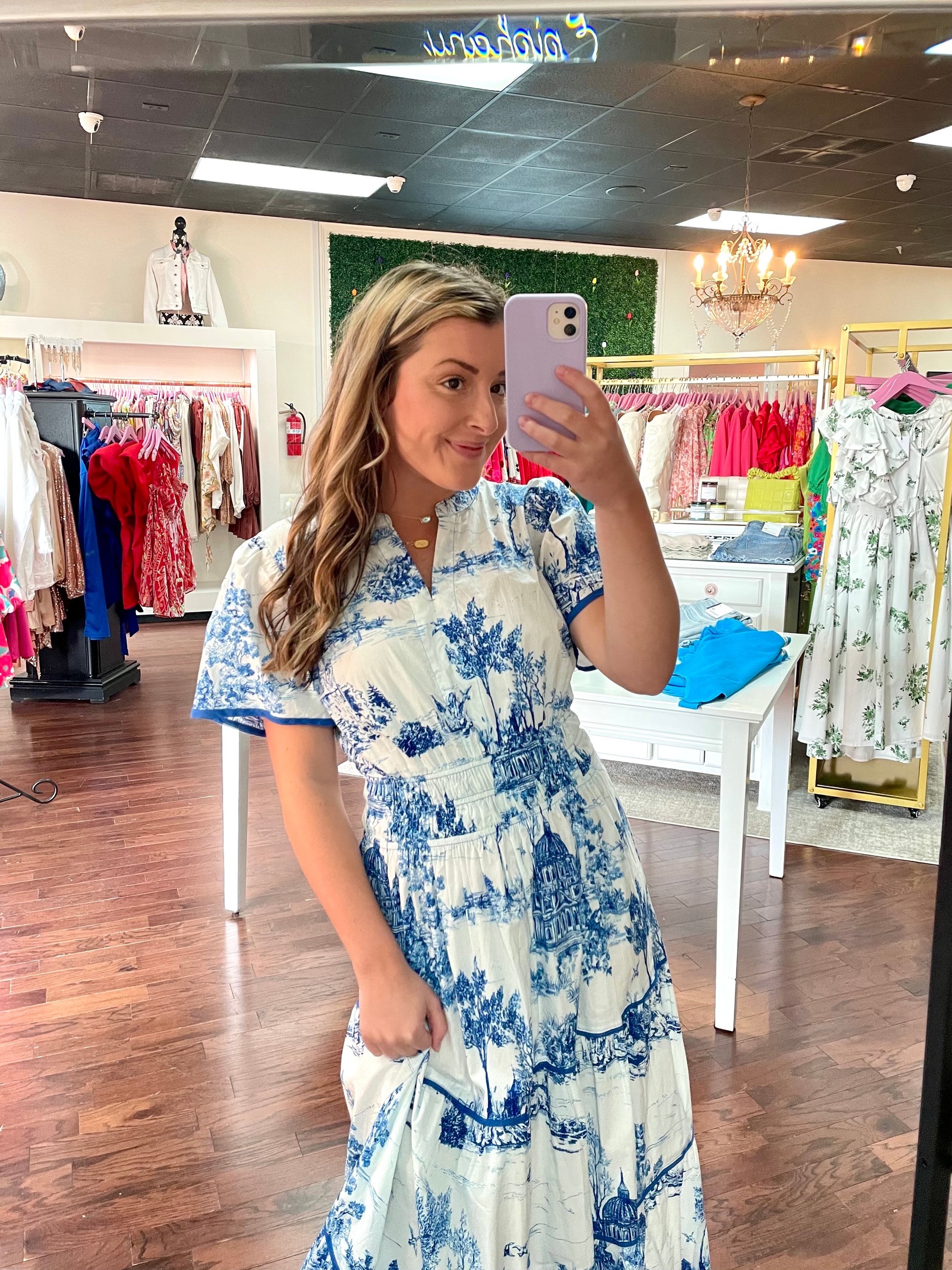 Get ready to turn heads in our Kesari Dress! Featuring a stunning landscape print and playful balloon short sleeves, this tiered dress will elevate your style. The split neck and smocked waist add flattering details, while the 100% cotton fabric ensures comfort. Perfect for any occasion, this dress is a must-have.