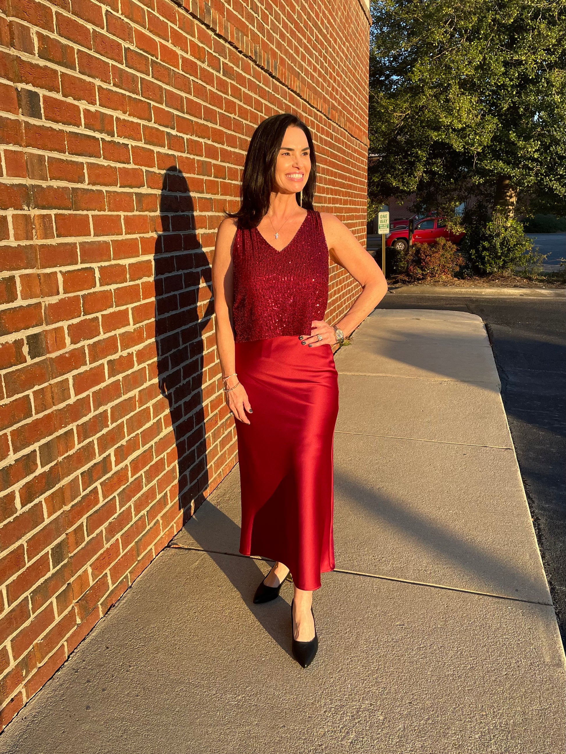 Be the star of the show with our Laguna Top! This Shining Star Sequin Top features a V neckline and tank top design, perfect for any occasion. With its lined and loose fit, you'll shine and feel comfortable all day (and night) long!