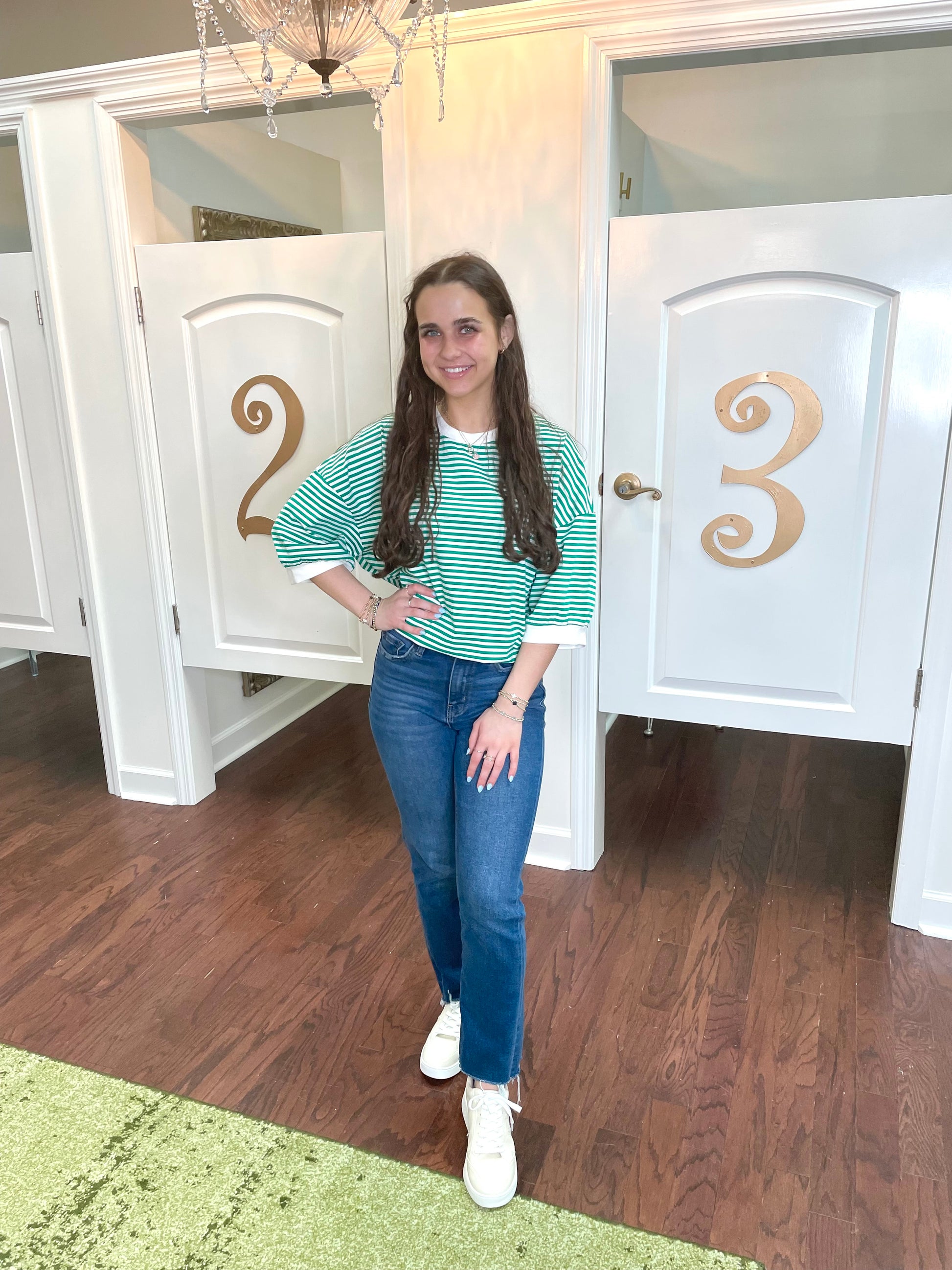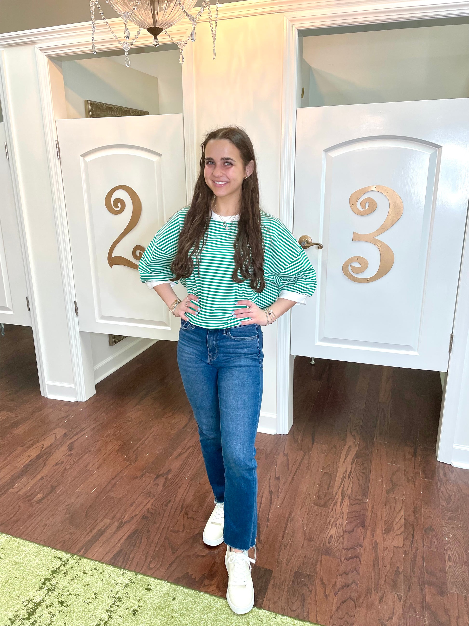 The Laia Top is a must-have for any wardrobe. With its timeless crewneck design and staple striped print, this top is both cool and classic. Its oversized, slouchy silhouette and versatile fit make it perfect for layering or wearing on its own. Add this top to your loungewear collection for a relaxed yet stylish look. Pair it with your favorite bottoms and shoes for a variety of looks this season.