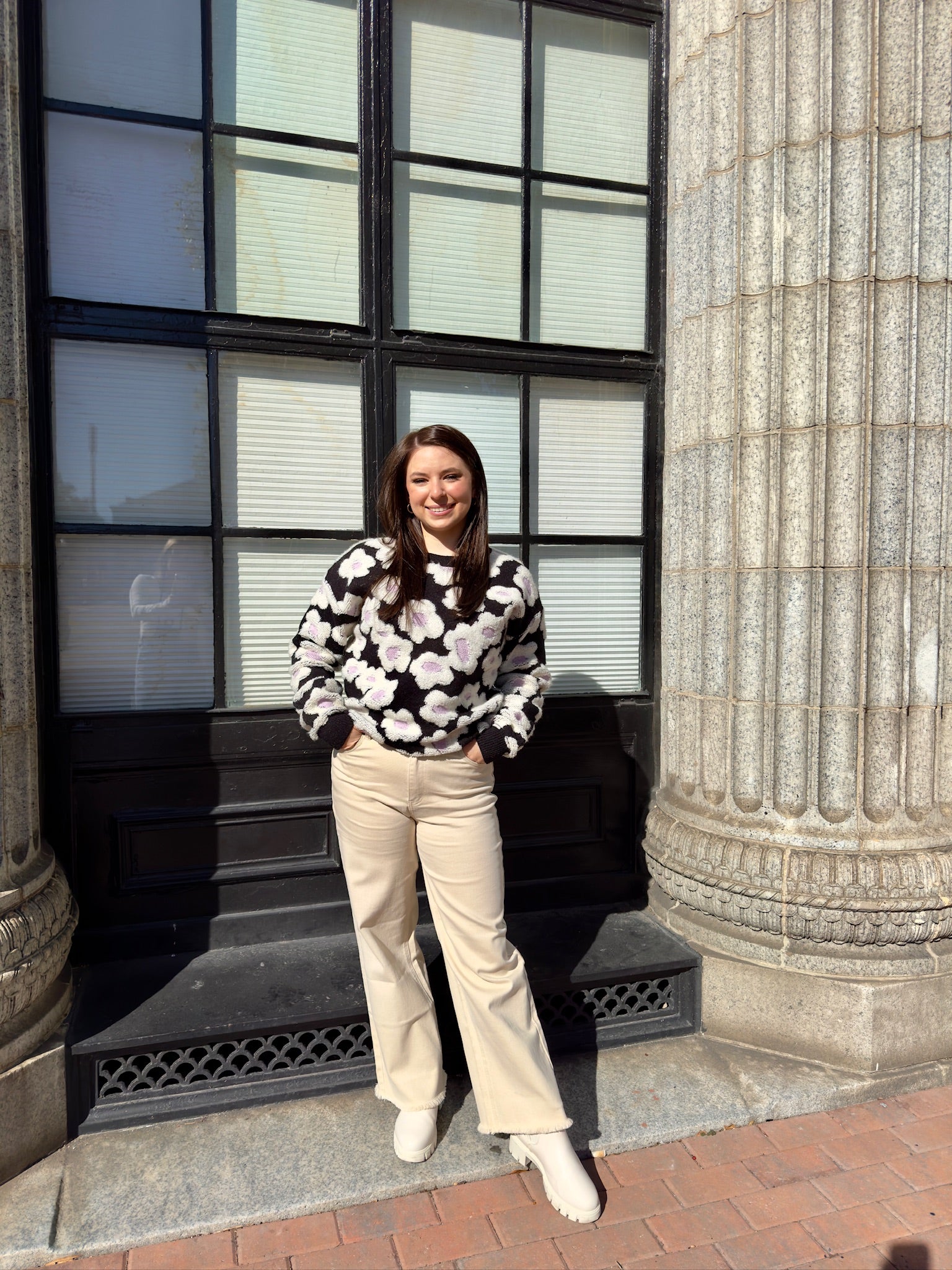 Stay cozy and stylish this winter with the Lizzie Sweater! This ribbed crew neck pullover style sweater is perfect for cuddling up and making a bold statement with its fresh floral design in textured sherpa knit. The drop shoulder long sleeves with ribbed cuffs and ribbed hem make it all the more comfy and ensure you'll look equally amazing whether you're at home or out and about!