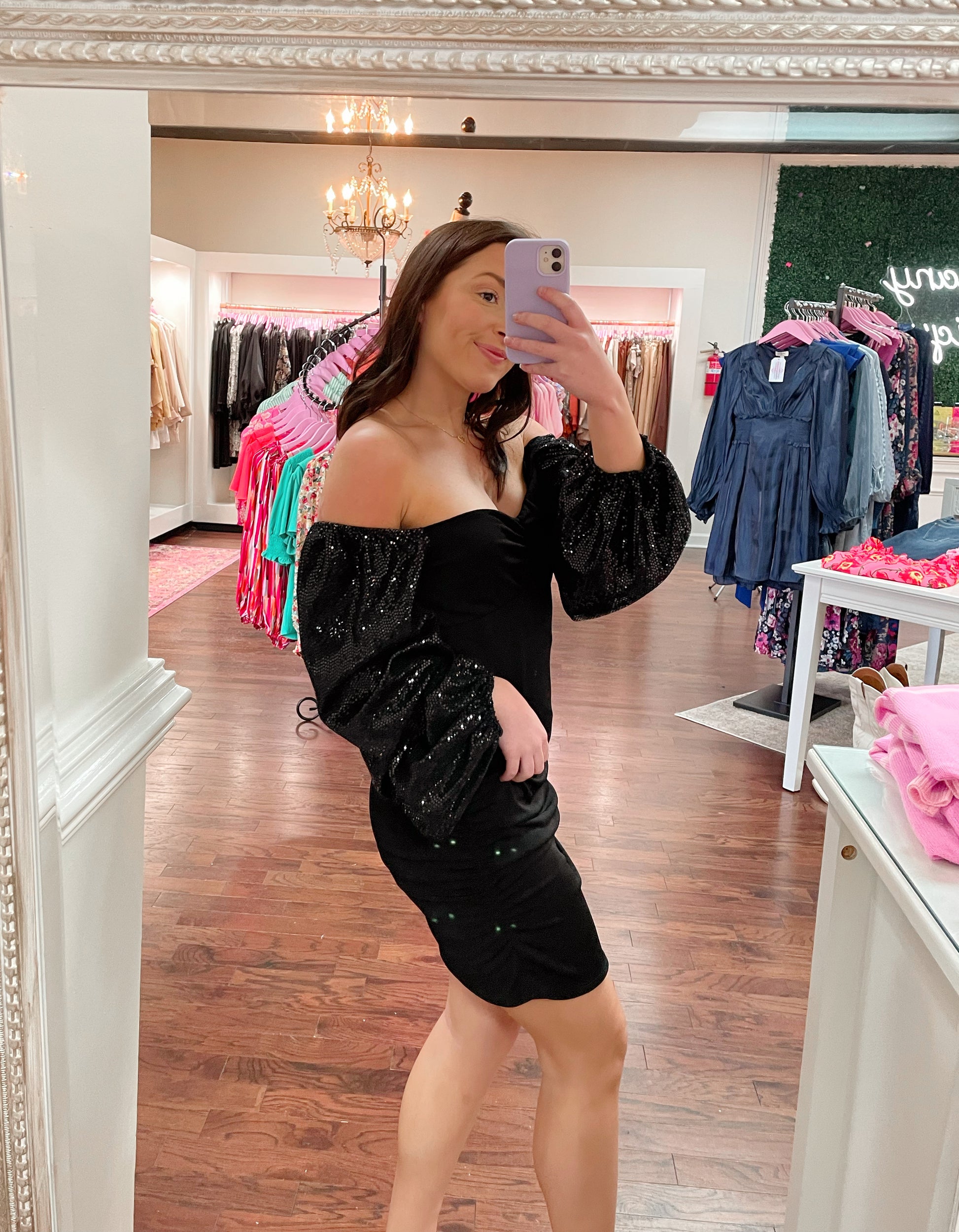 Shine bright with this Sequin Sleeve Mini Bodycon Dress! Get ready to sparkle as you walk in the room with its eye-catching square neckline and dazzling sleeve details. Look sleek and chic in a jiffy - you're about to be the belle of the ball!