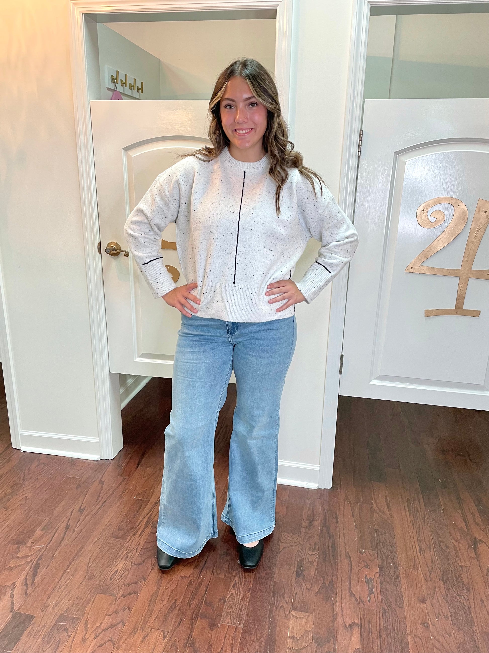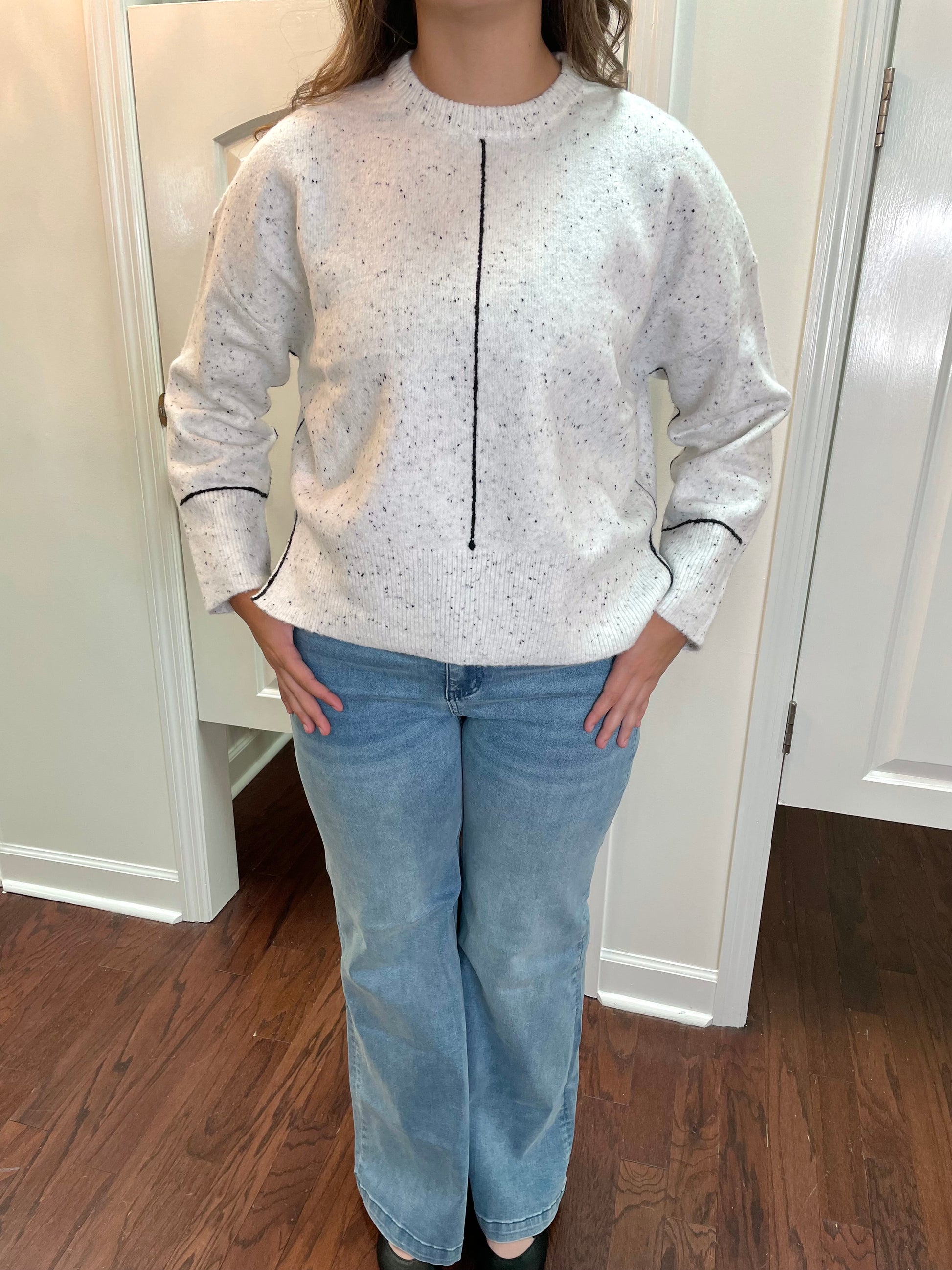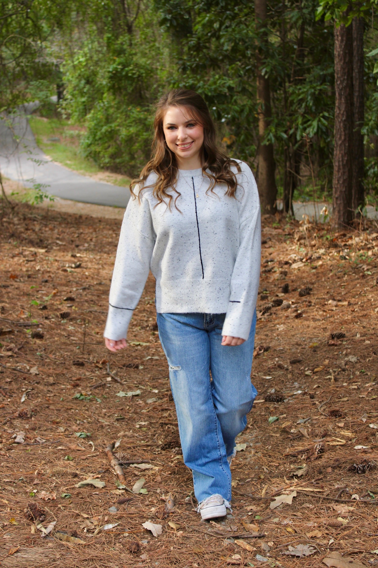 Get ready to cozy up in style with the Solange Sweater! This playful pullover sweater features a multi colored speckled design, available in two color options. Made with a luxurious blend of 74% acrylic, 22% polyester, and 4% spandex, it's the perfect combination of comfort and style. Stay warm and on-trend with this cozy, soft crew neck sweater. (Sweater weather never looked so good!)