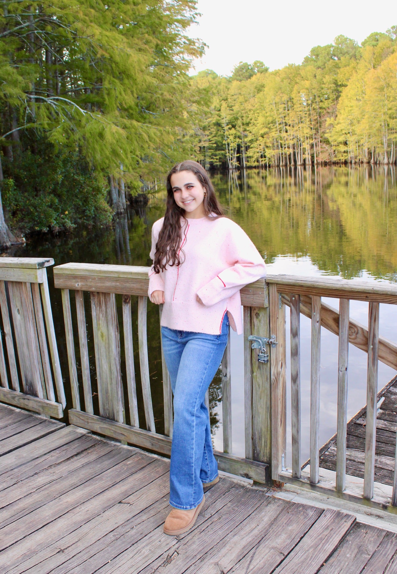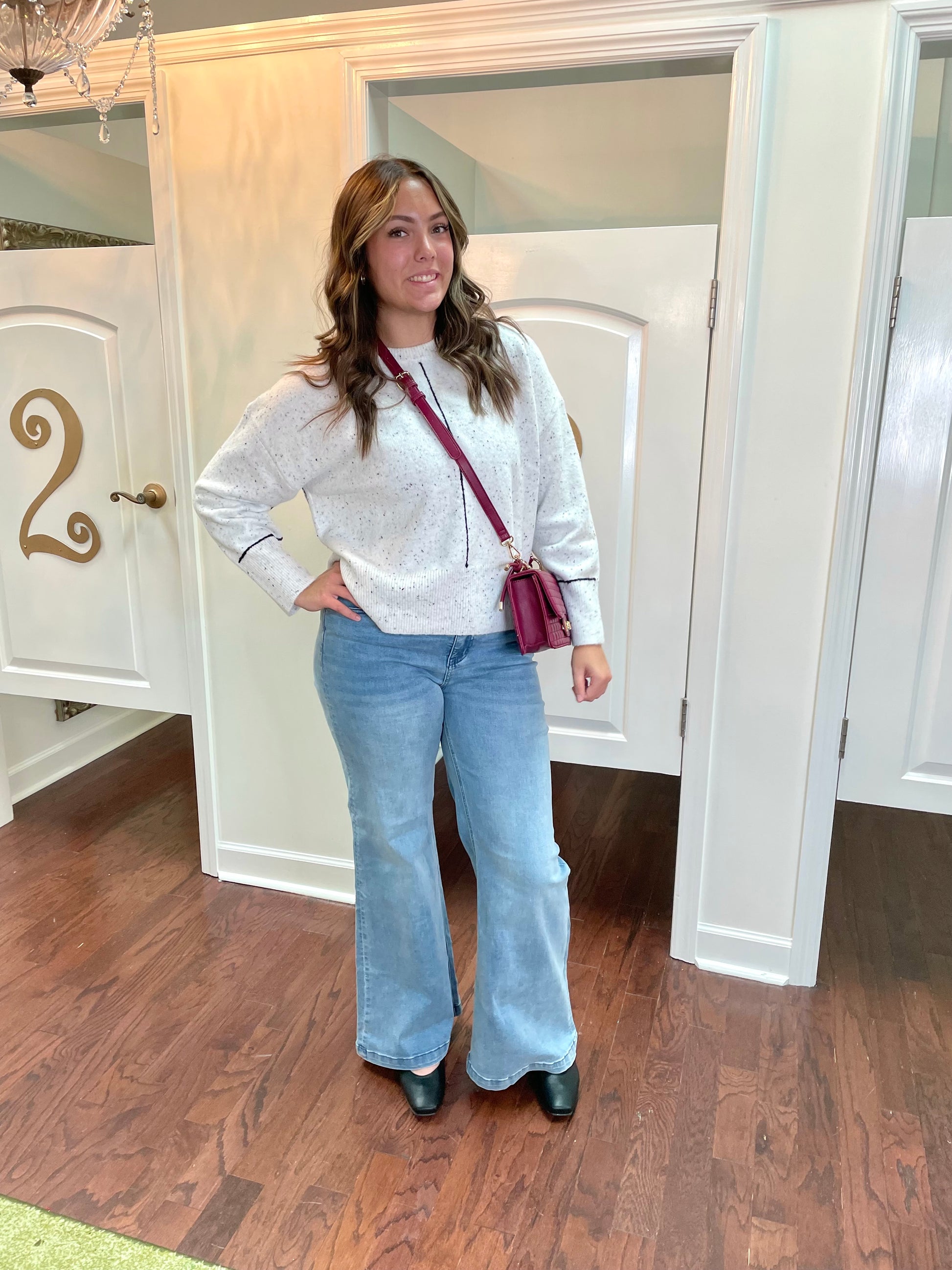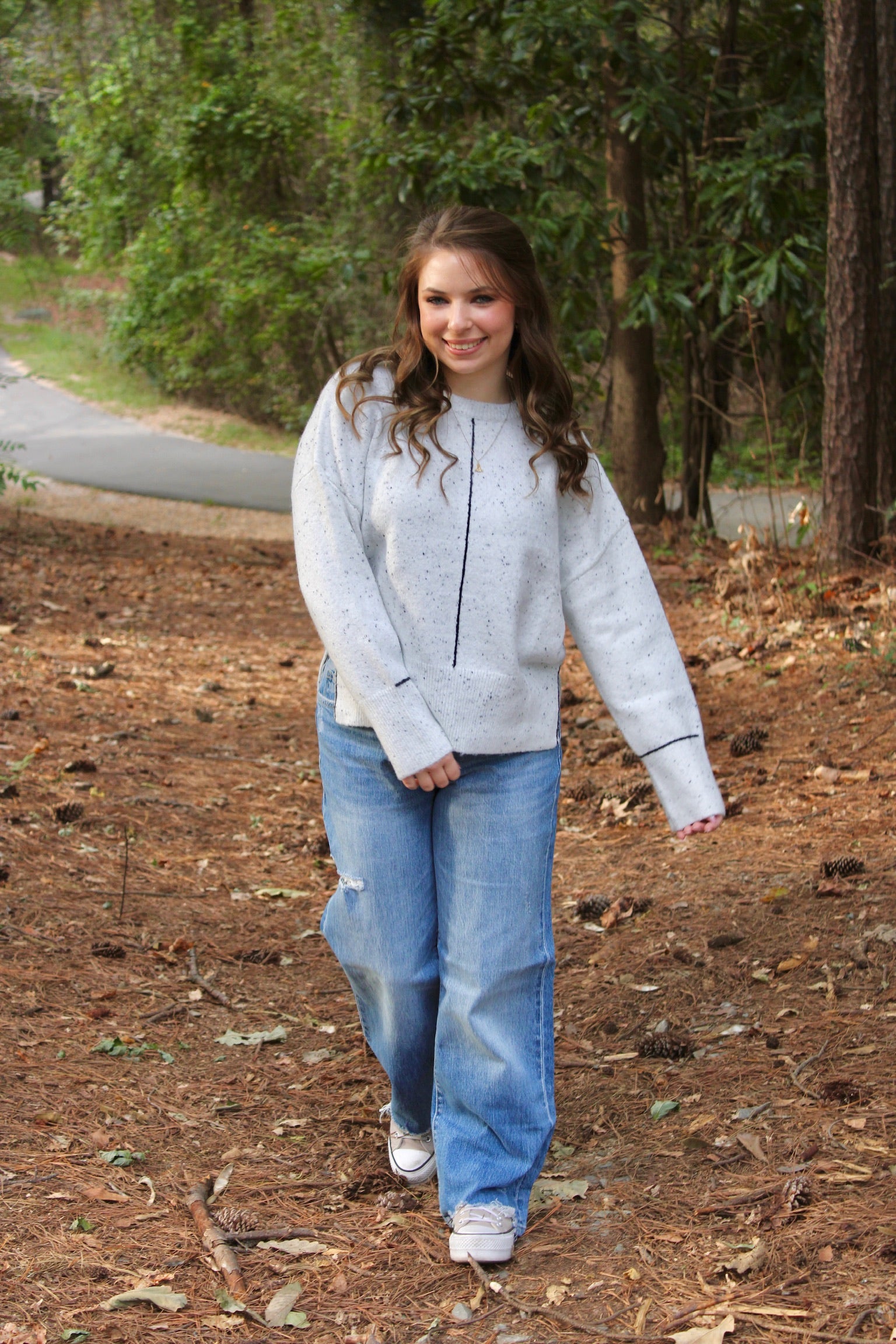 Get ready to cozy up in style with the Solange Sweater! This playful pullover sweater features a multi colored speckled design, available in two color options. Made with a luxurious blend of 74% acrylic, 22% polyester, and 4% spandex, it's the perfect combination of comfort and style. Stay warm and on-trend with this cozy, soft crew neck sweater. (Sweater weather never looked so good!)