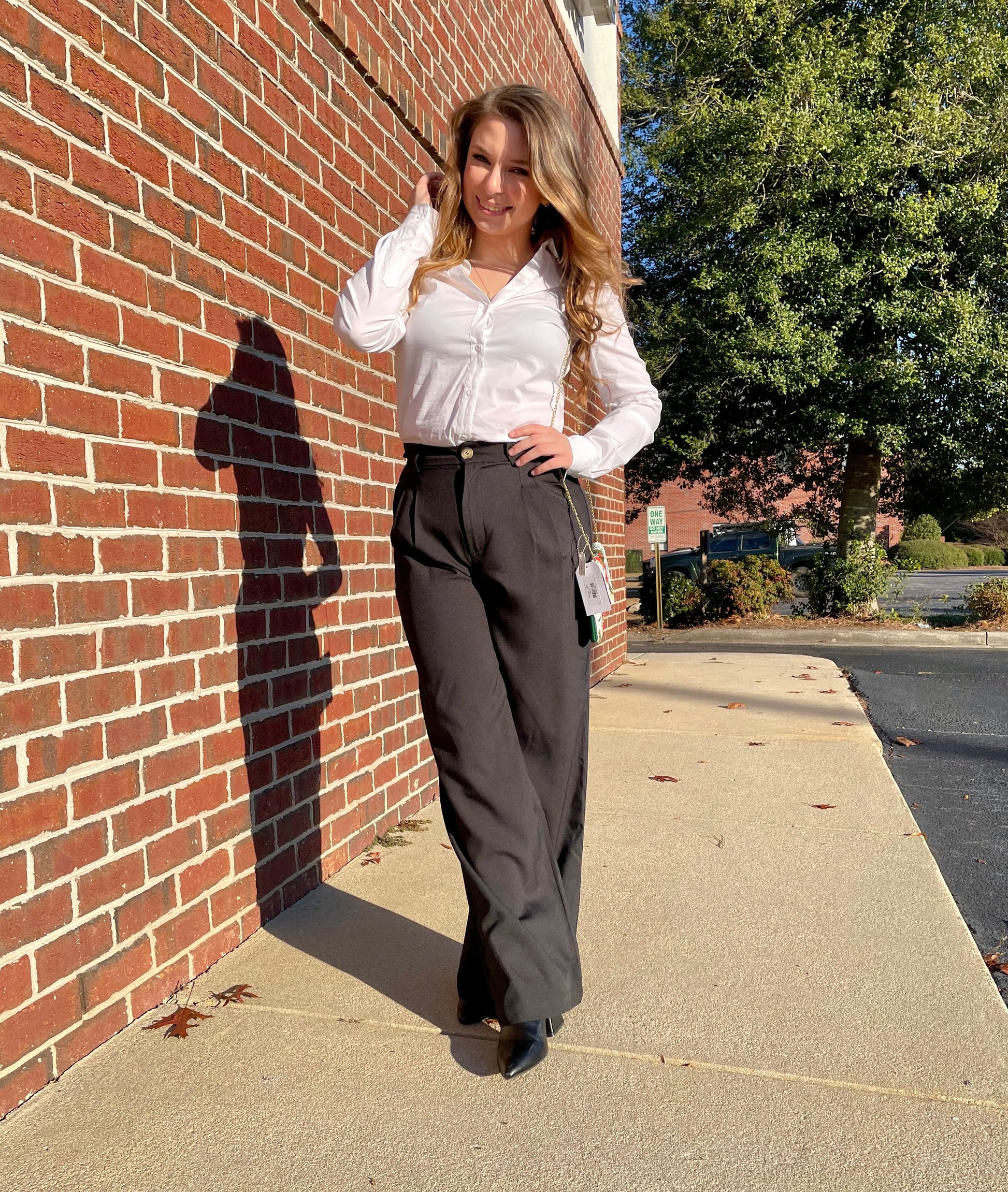 Our Straight Leg Pants are the perfect combo of relaxed and put-together. Flowy and comfy but designed with chic button-front closure and pockets, these pants are ready to take on whatever your day brings! Plus with a luxurious 95% poly- 5% spandex blend fabric, they'll keep you looking polished all day (and all night) long. Ain't nothin' wrong with that!