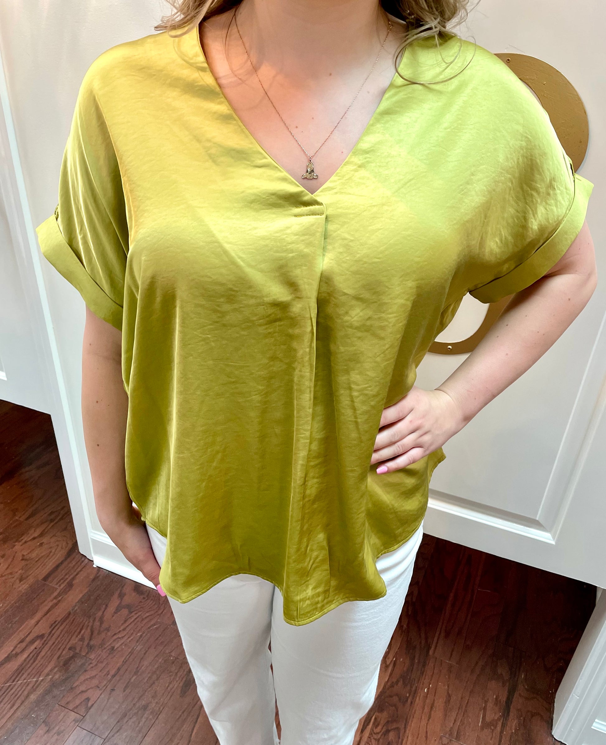 Get ready to slay in the Tia Blouse! This solid short sleeve top features a trendy v-neckline and a front pleat for added detail. Made with a relaxed fit from a blend of 55% rayon and 45% polyester, this blouse is both stylish and comfortable. Perfect for any occasion!