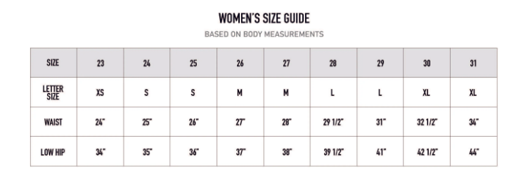 Sizing: runs true to size; size chart included in the photos (RISE 10" INSEAM 27" IN SIZE 5/26)